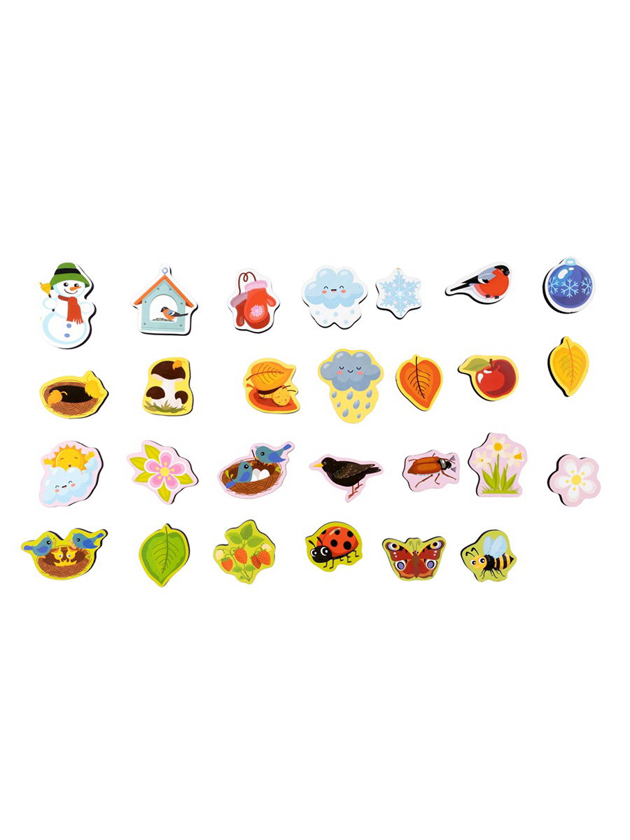 Развитие навыков: Воображение, Логика, Моторика, Фигуры, цвета Размер упаковки: 20.5 x 3.5 x 23 см. tnved: 9504908000 Температурное ограничение: Нет Вид головоломки: Липучки Возраст: От 3 лет Для кого: Унисекс Вид: Игры с липучками Набор: Да Первые шаги в понимании времени через игру Деревянная игра с липучками "Времена года" – это понятный и увлекательный способ познакомить ребёнка с природными изменениями и цикличностью года. Игровой формат помогает легко запоминать, что происходит зимой, весной, летом и осенью, без перегрузки и скучных объяснений.