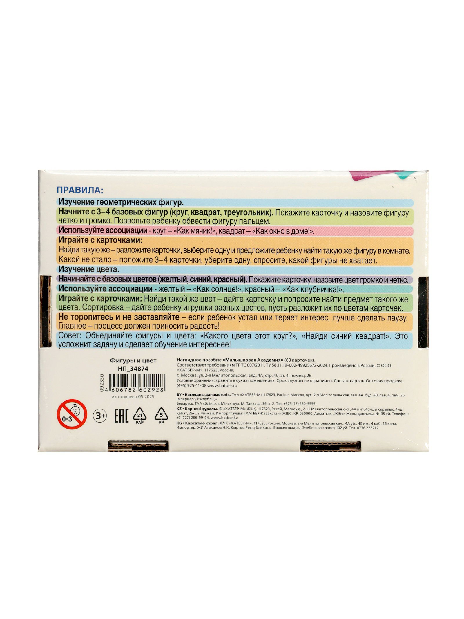 Развивающие карточки "Малышковая Академия. Фигуры и цвет", 60 шт., Hatber, Россия