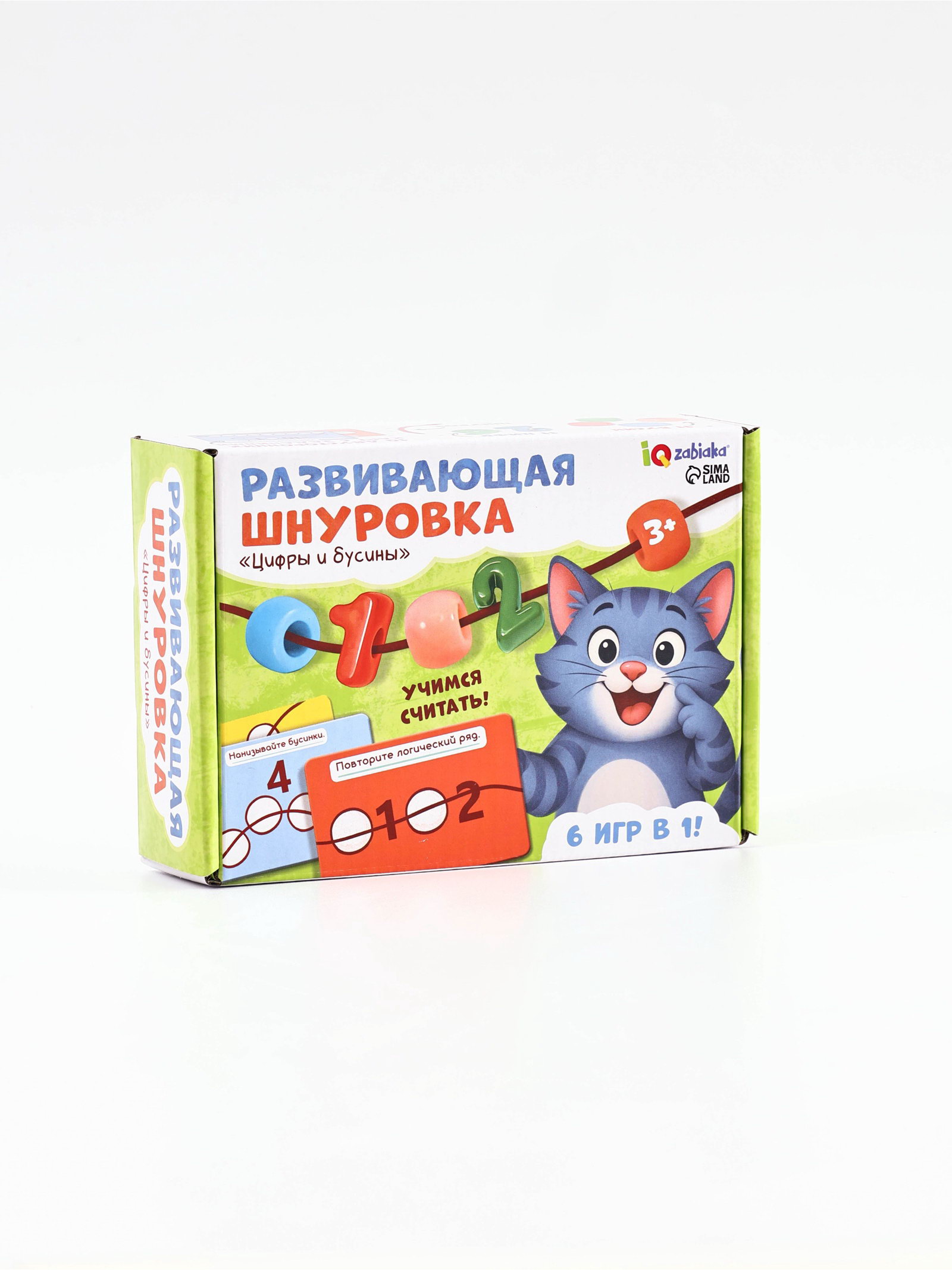 Развивающая шнуровка "Цифры и бусины", 6 в 1, 3+, 4.4x14.5x10 см., IQ-ZABIAKA, Китай