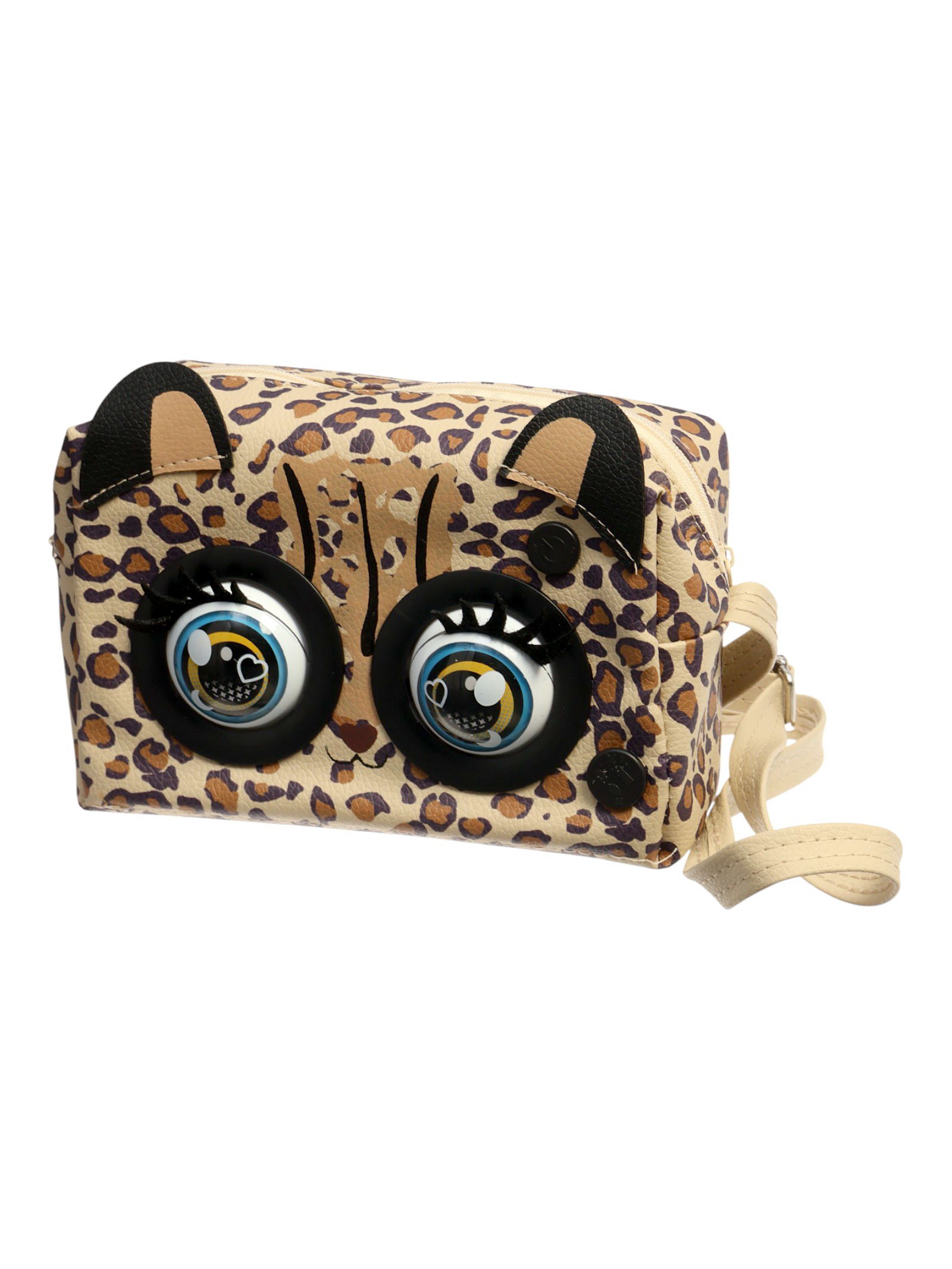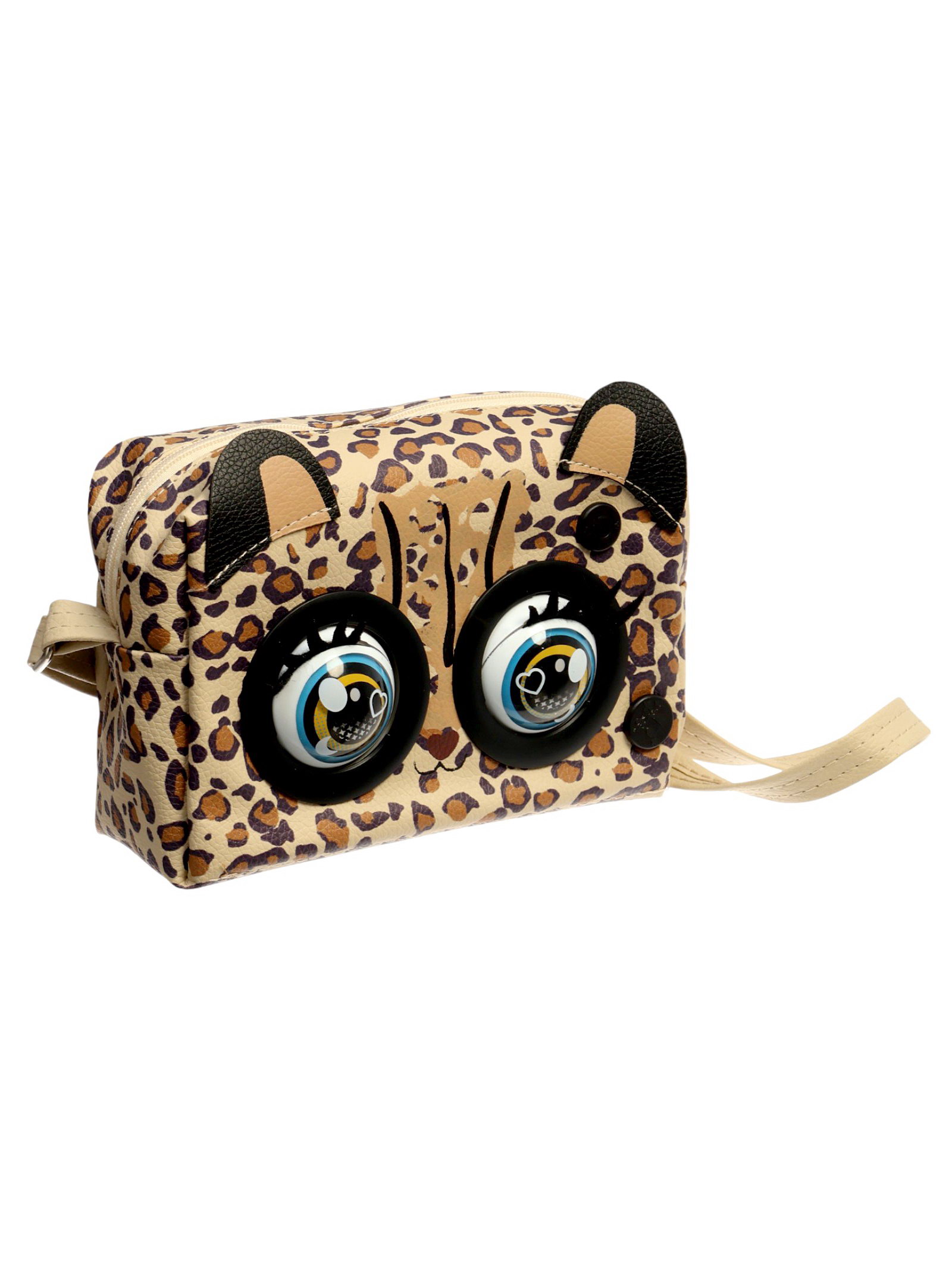 Музыкальная игрушка-сумочка "Котёнок", звуковые эффекты, глазки моргают, леопард, 10x26x24 см., Китай