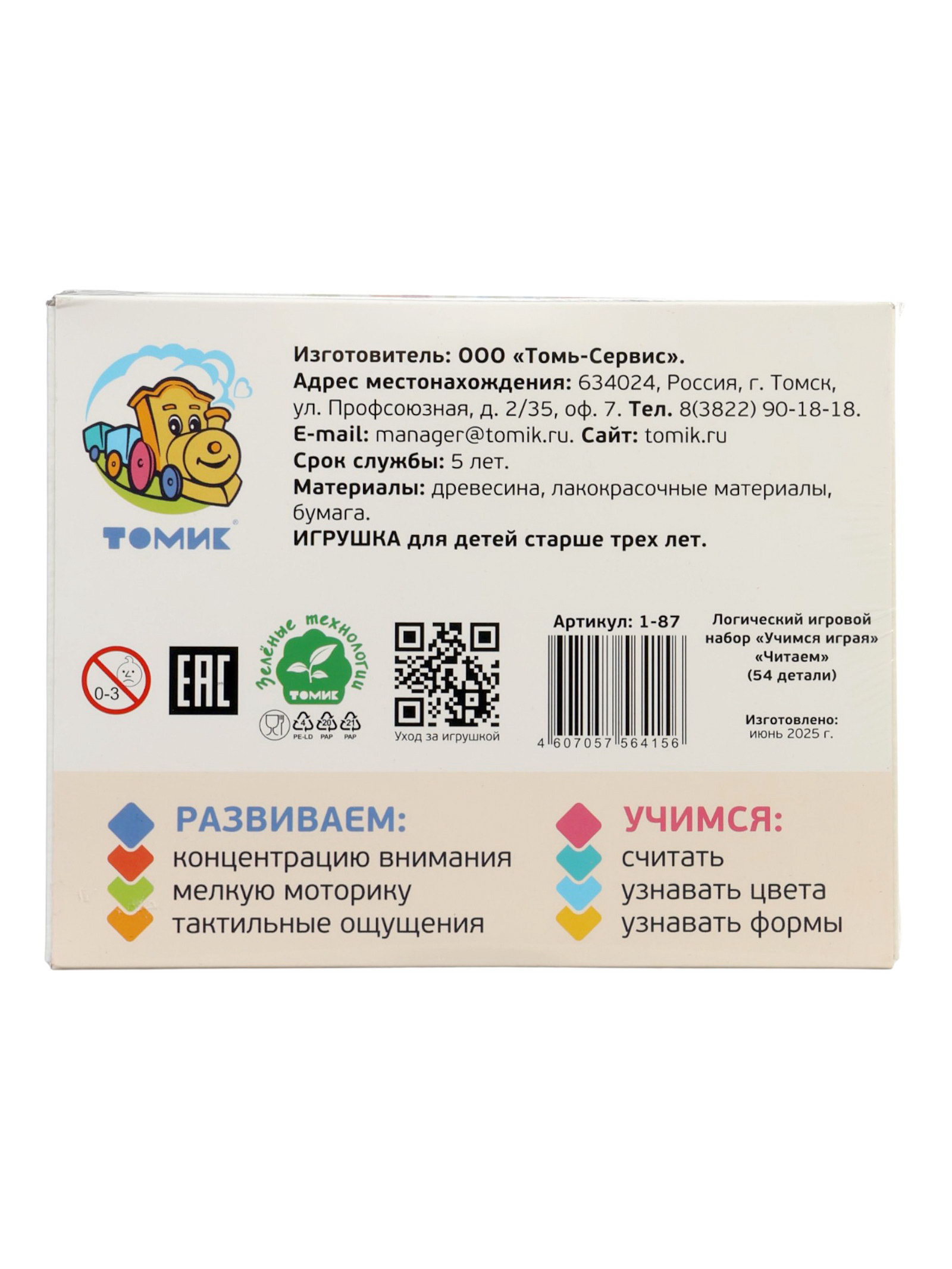 Кубики логические "Читаем слоги" деревянные, 54 детали, Томик, Россия
