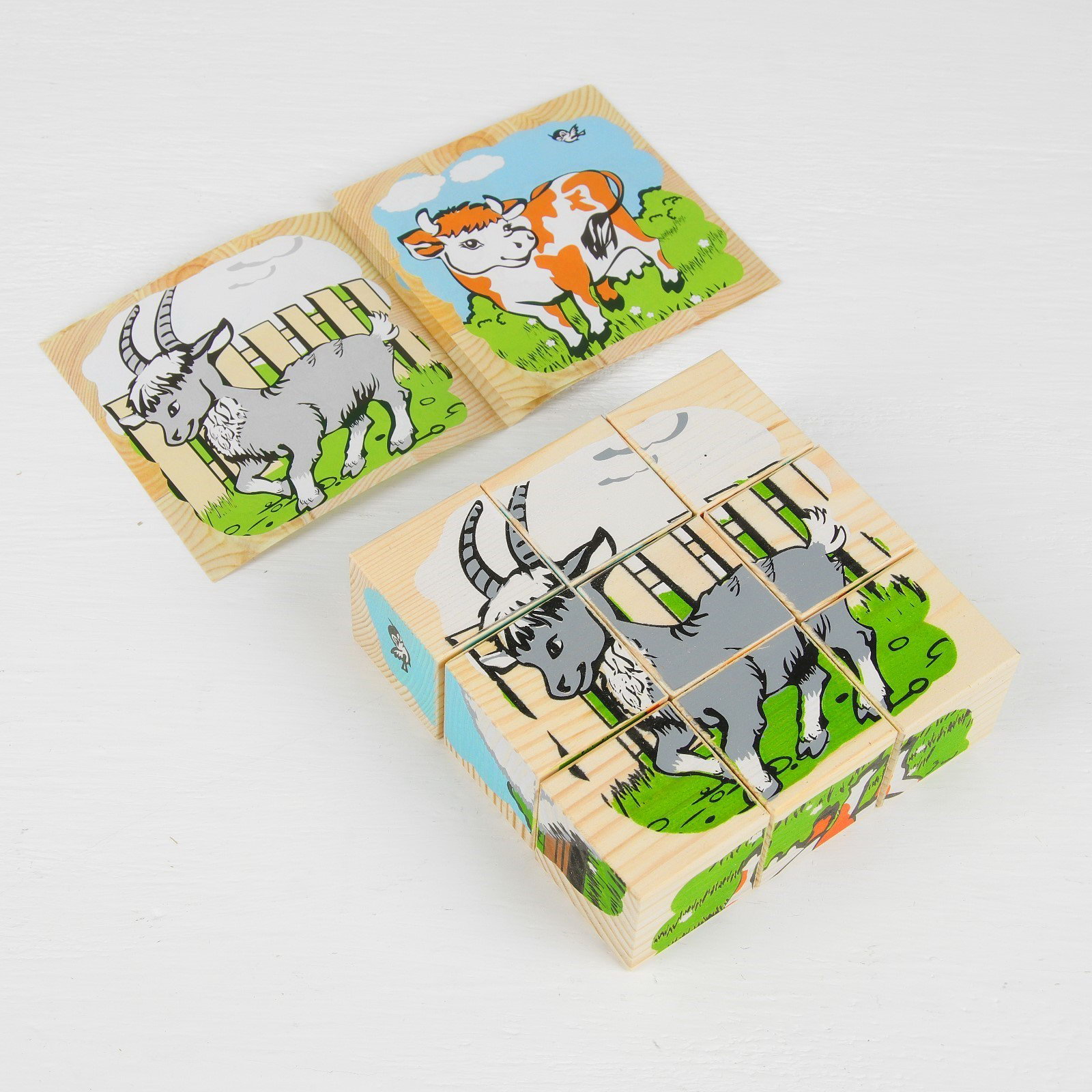 Кубики "Домашние животные", 9 элементов, 4x4x4 см., Томик, Россия