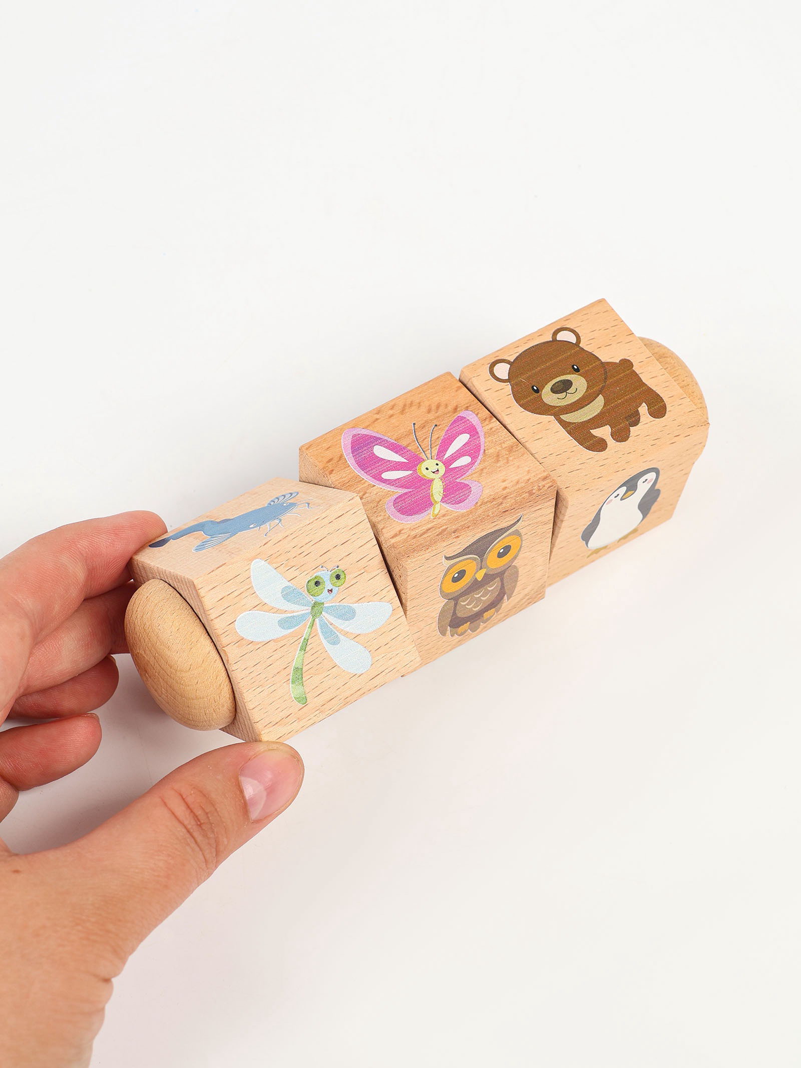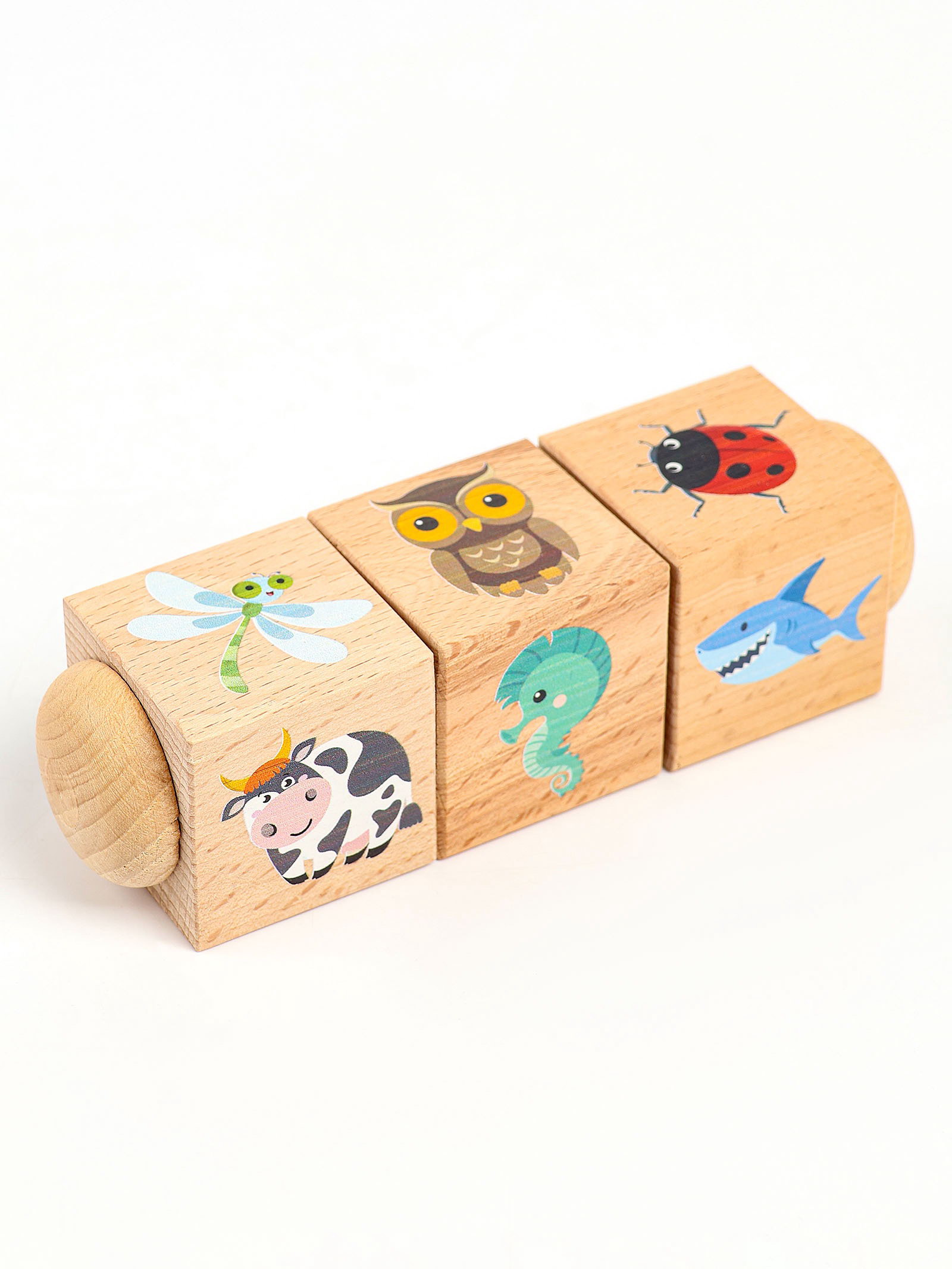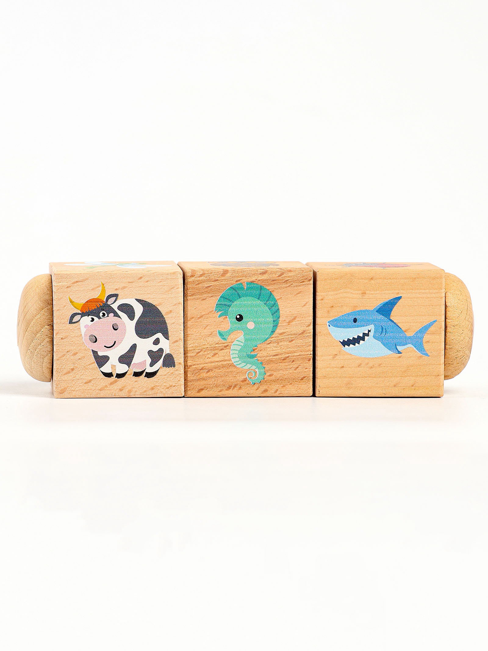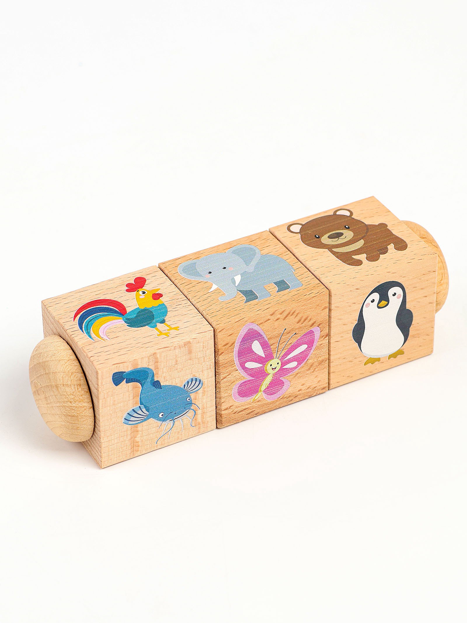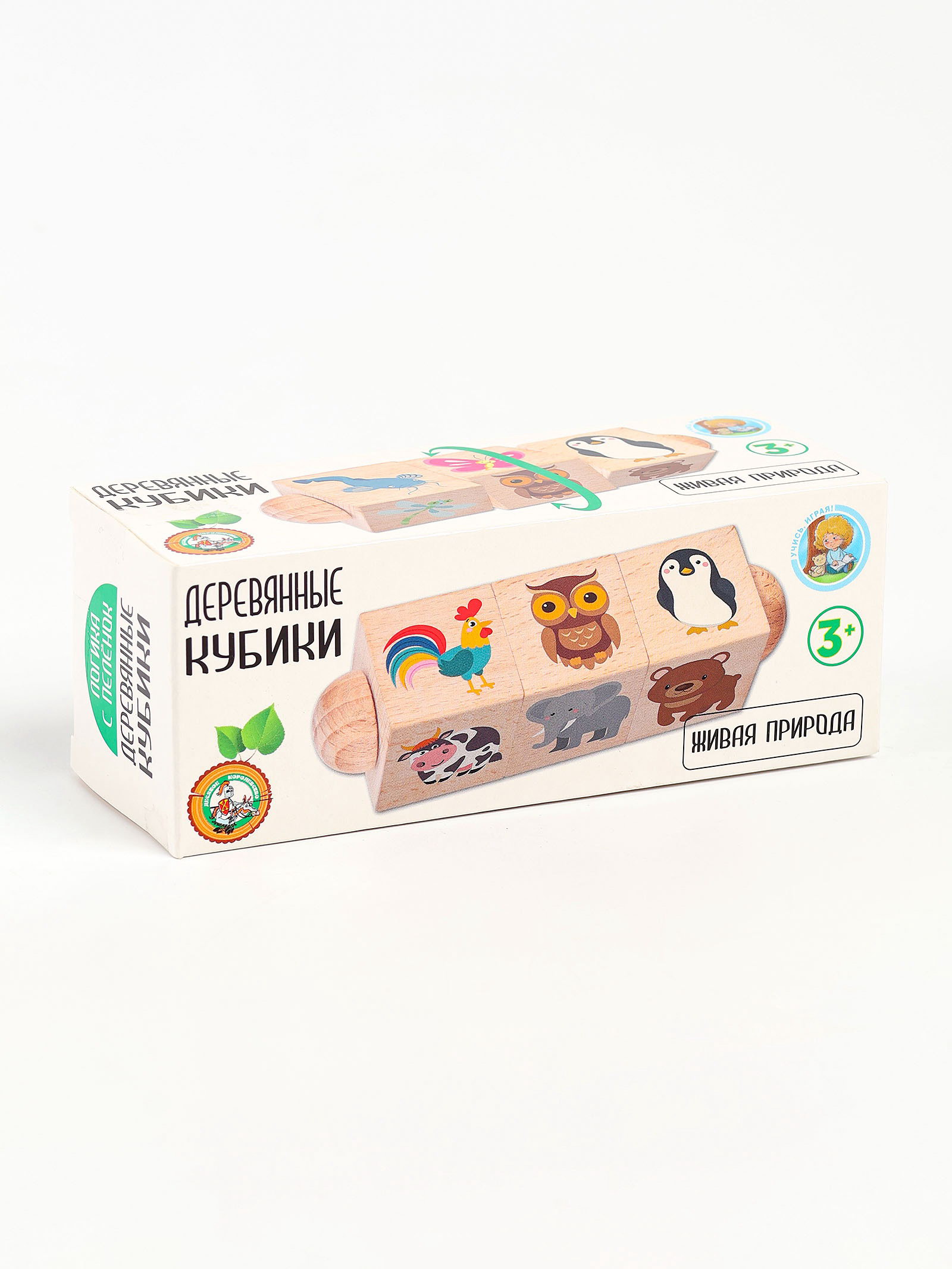 Кубики деревянные "Живая природа", на оси, 3 кубика, 6.7x6x13.5 см., Десятое Королевство, Россия