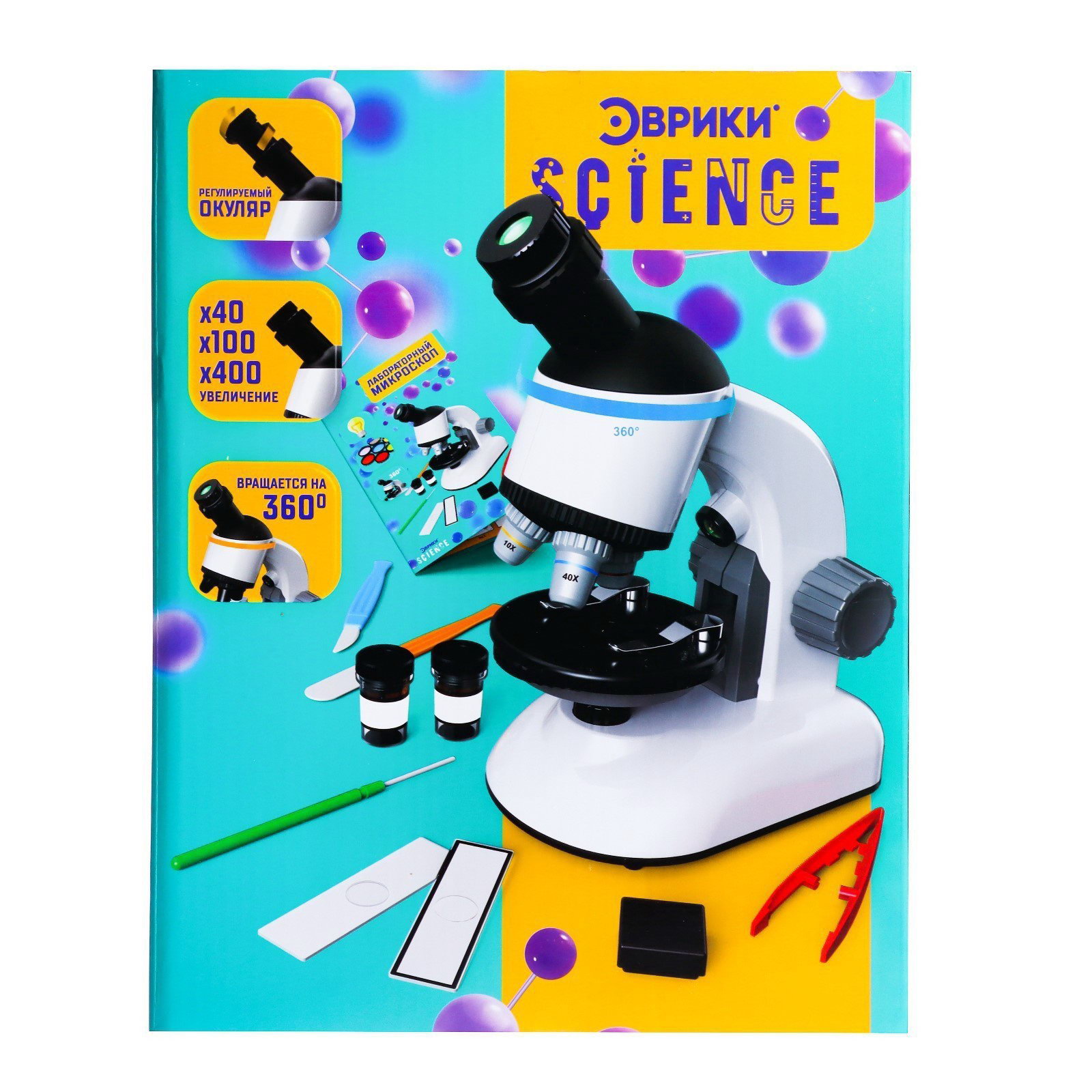 Игровой набор "Лабораторный микроскоп", вращающийся объектив с подсветкой, увеличение x40, x100, x400, 11.5x22.5x29 см., Эврики, Китай