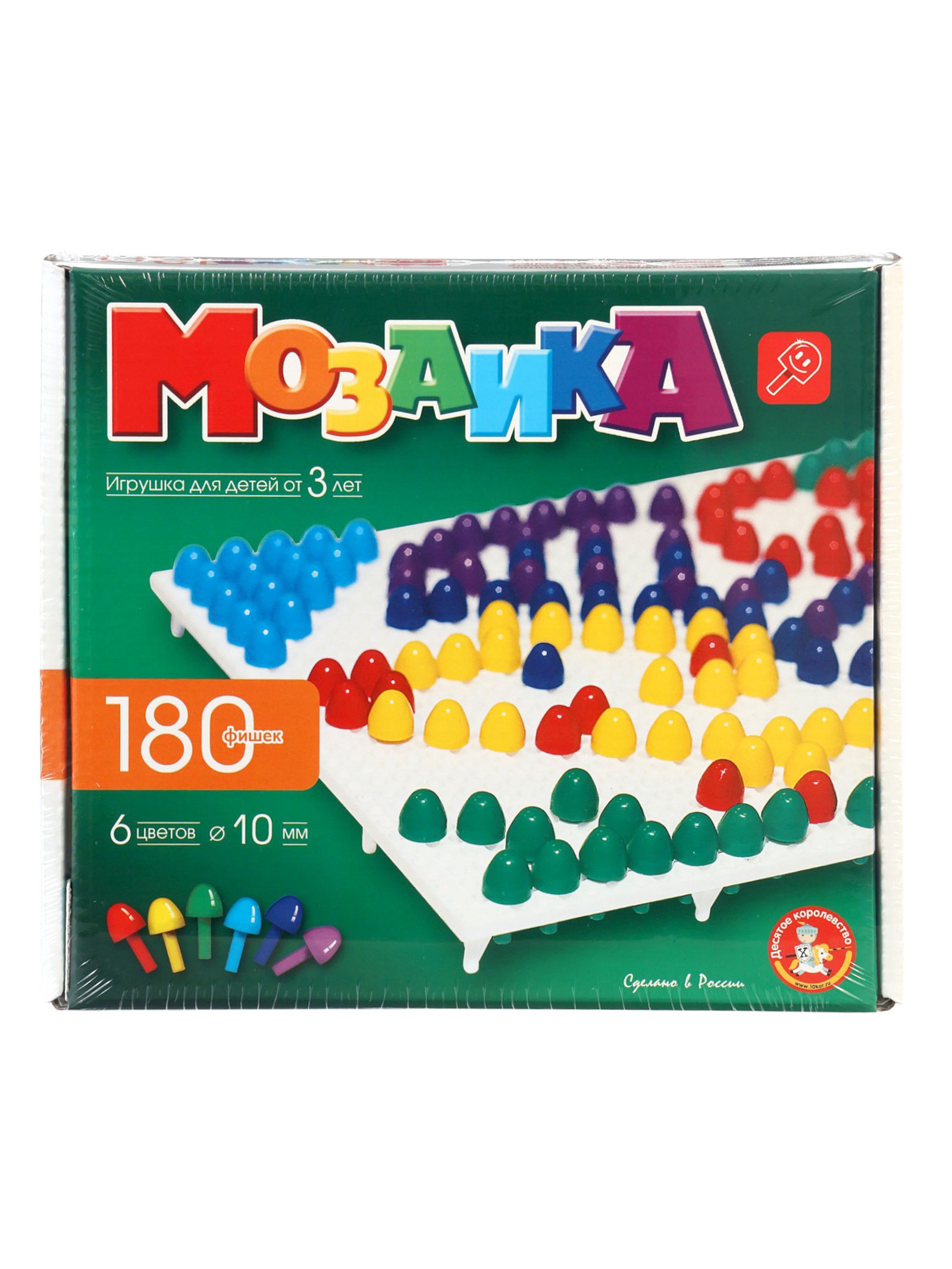 Мозаика детская, 180 элементов, 3x22x20 см., Десятое Королевство, Россия