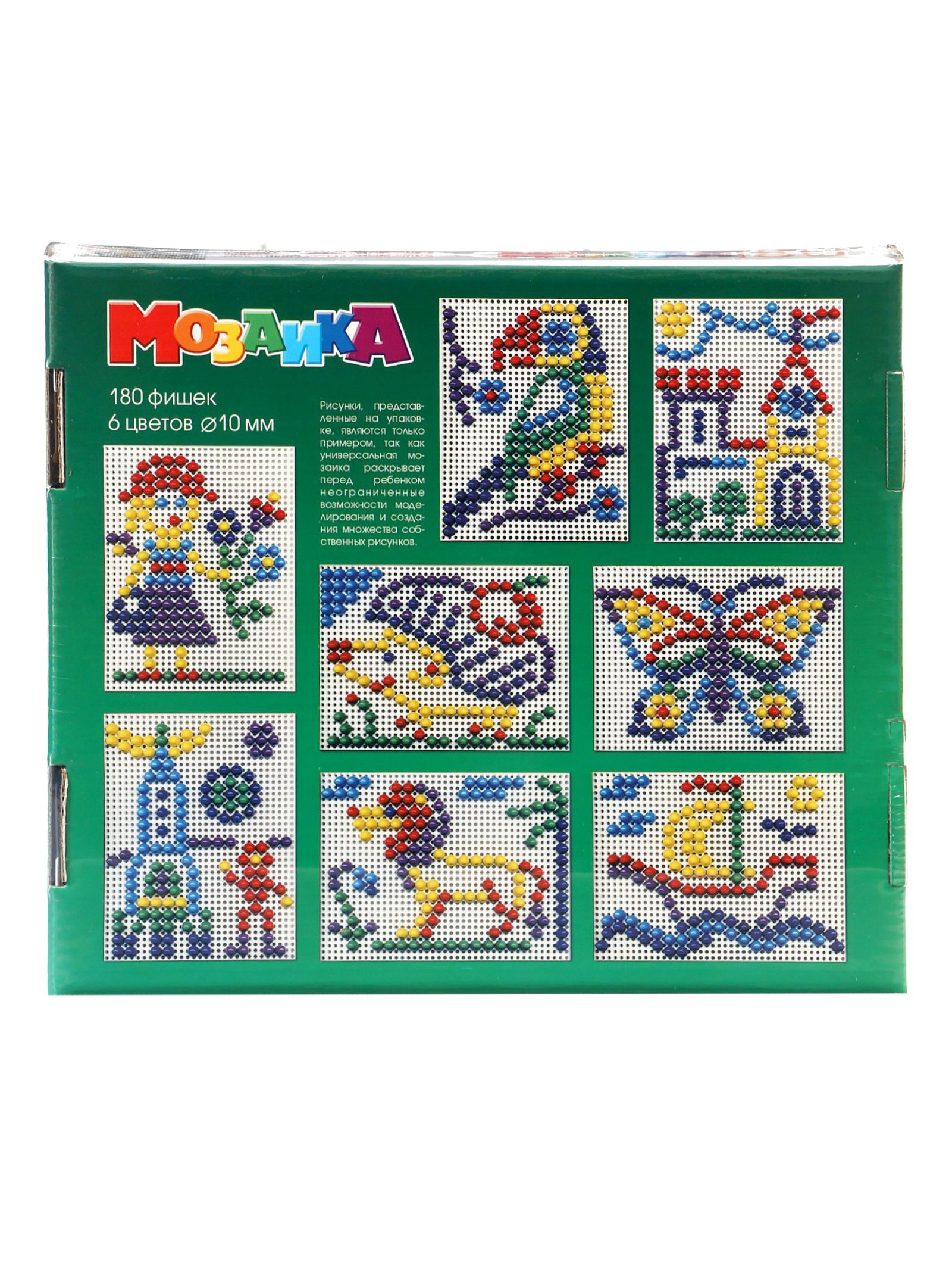 Размер упаковки: 30 x 3.5 x 23 см. Количество элементов: 180 Лицензия: Нет Вид мозаики: Гвоздики Для кого: Унисекс tnved: 4911990000 Возраст: От 3 лет Мозаика для детей это увлекательная игра, которая вдохновляет на творчество и помогает развивать важные навыки. Яркие разноцветные фишки позволяют выкладывать разнообразные узоры и изображения. Дети с удовольствием будут создавать бабочек, домики, кораблики и любые другие фигурки, проявляя свою фантазию. Состав набора