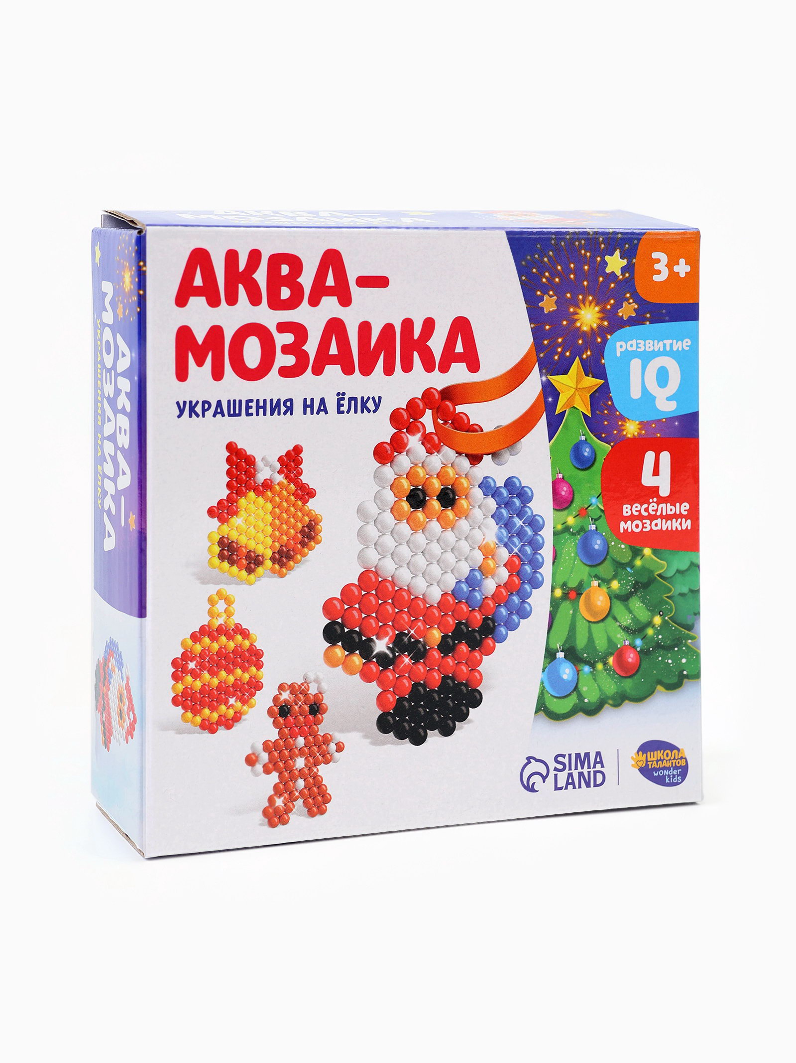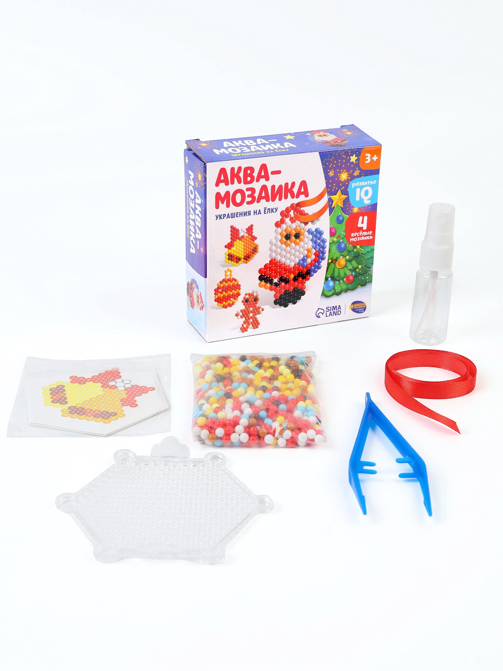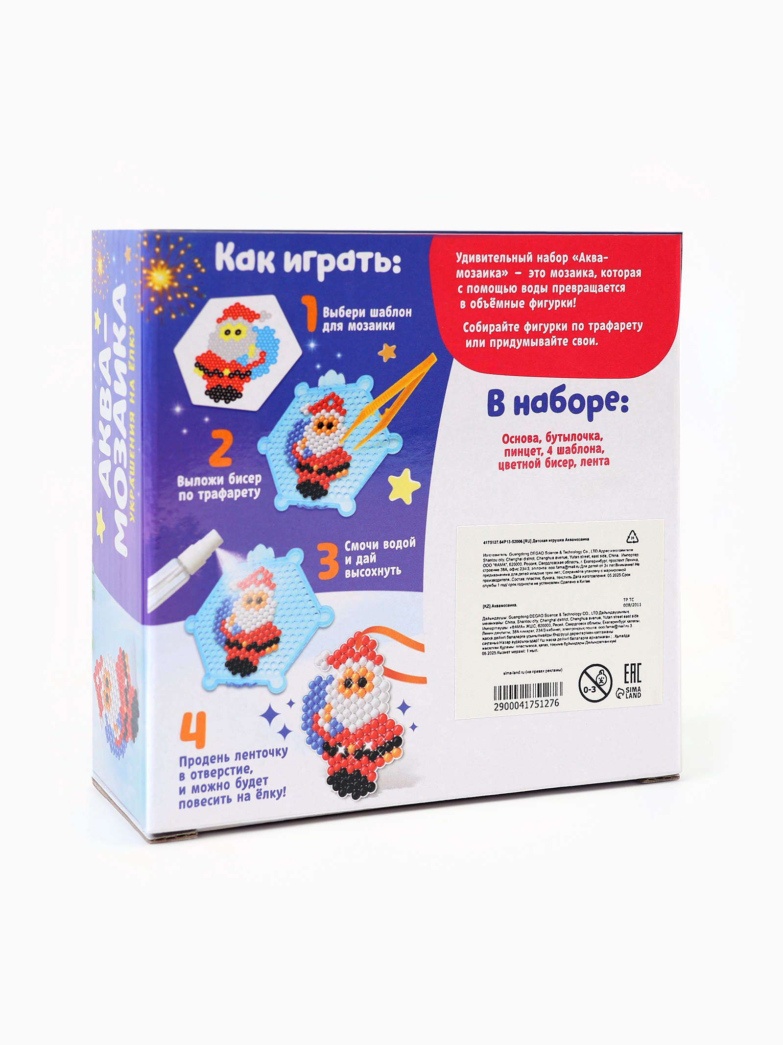 Аквамозаика "Дед Мороз с мешком", подвески на ёлку, 4 фигурки, 449 шариков, 12x12x4 см., Школа талантов, Китай