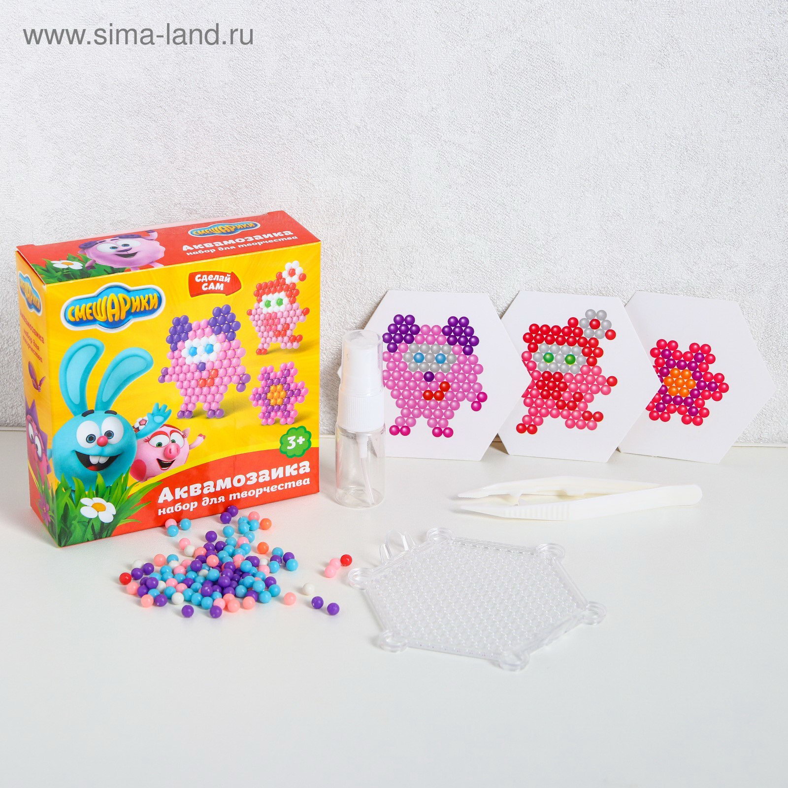 Аквамозаика для детей "Бараш и Нюша", 11x11x3 см., Смешарики, Китай
