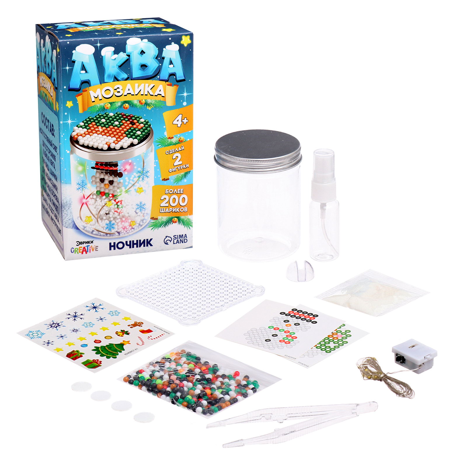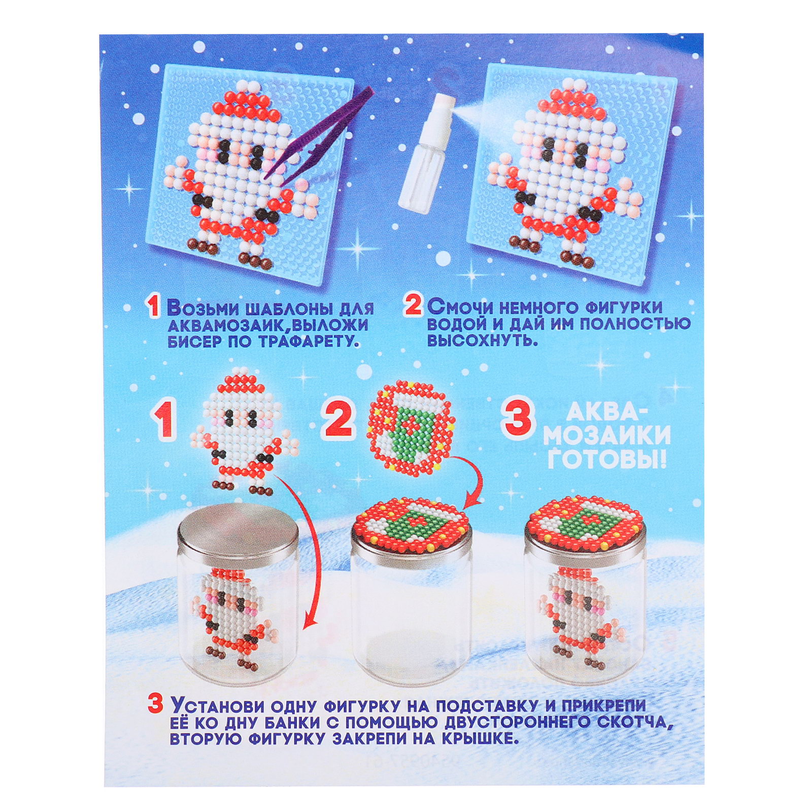 Тематика: Детская, Новогодняя Размер упаковки: 9 x 15 x 9 см. Игрушка с видео: Да Для кого: Унисекс Возраст: От 3 лет tnved: 9503007000 Символ года: Нет Вид мозаики: Аква-мозаика Количество элементов: 200 Тематика праздника: Новый год Аквамозаика "Снежная баночка" скрасит дни в ожидании Нового года и поможет весело и с пользой провести время. Ребёнок соберёт 2 объёмных фигурки из шариков-пикселей и создаст ночник своими руками. Как сделать ночник
