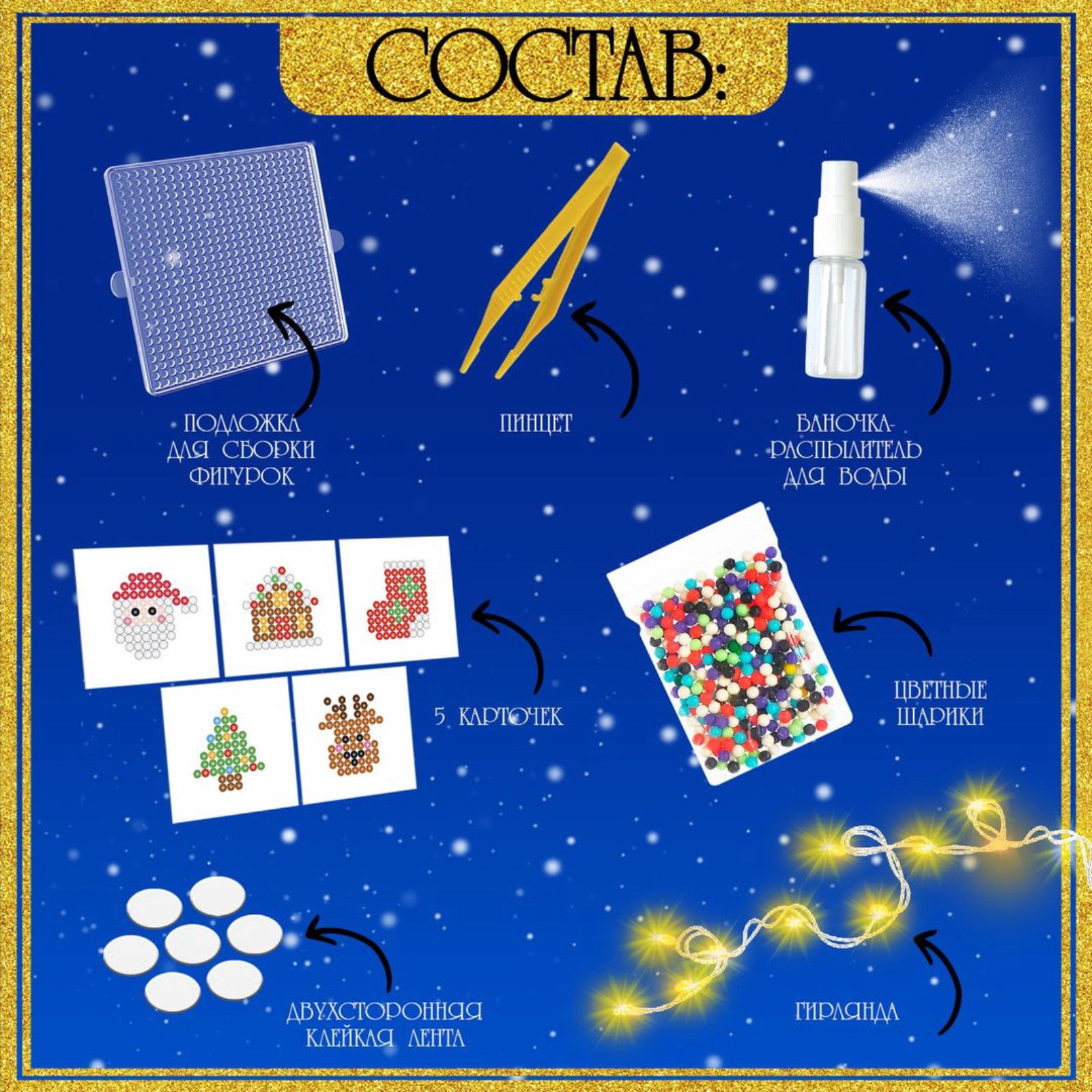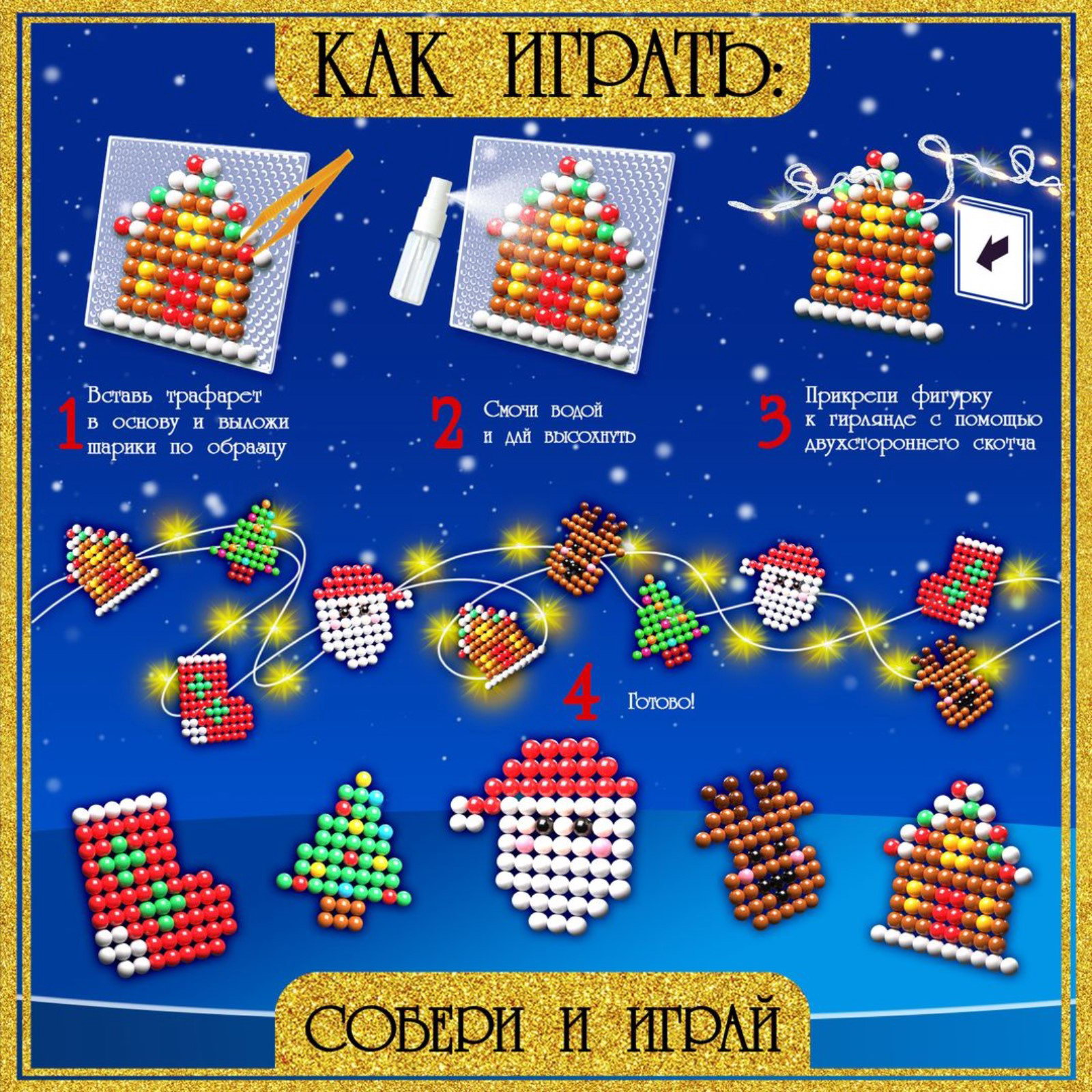 Аквамозаика "Новогодняя гирлянда", 5 схем, 600 шариков, 14x14x4 см., Школа талантов, Китай