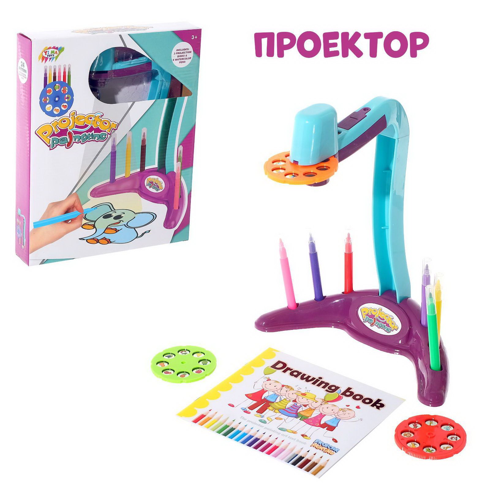 Проектор настольный "Рисуем вместе", с аксессуарами, 4x25x31.5 см., Китай