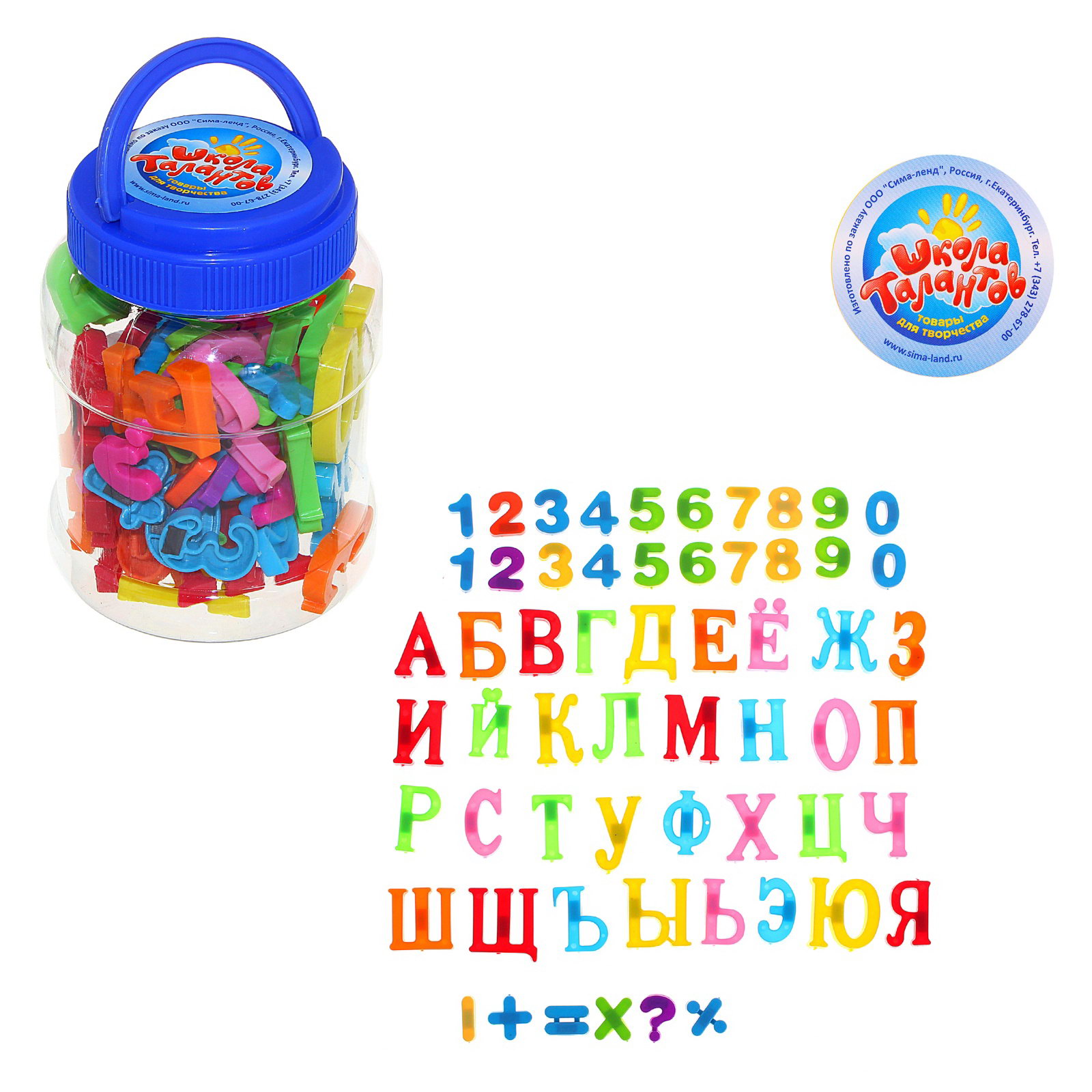 Алфавит магнитный русский язык, цифры, 59 деталей, МИКС, 9x9x12.5 см., Школа талантов, Китай