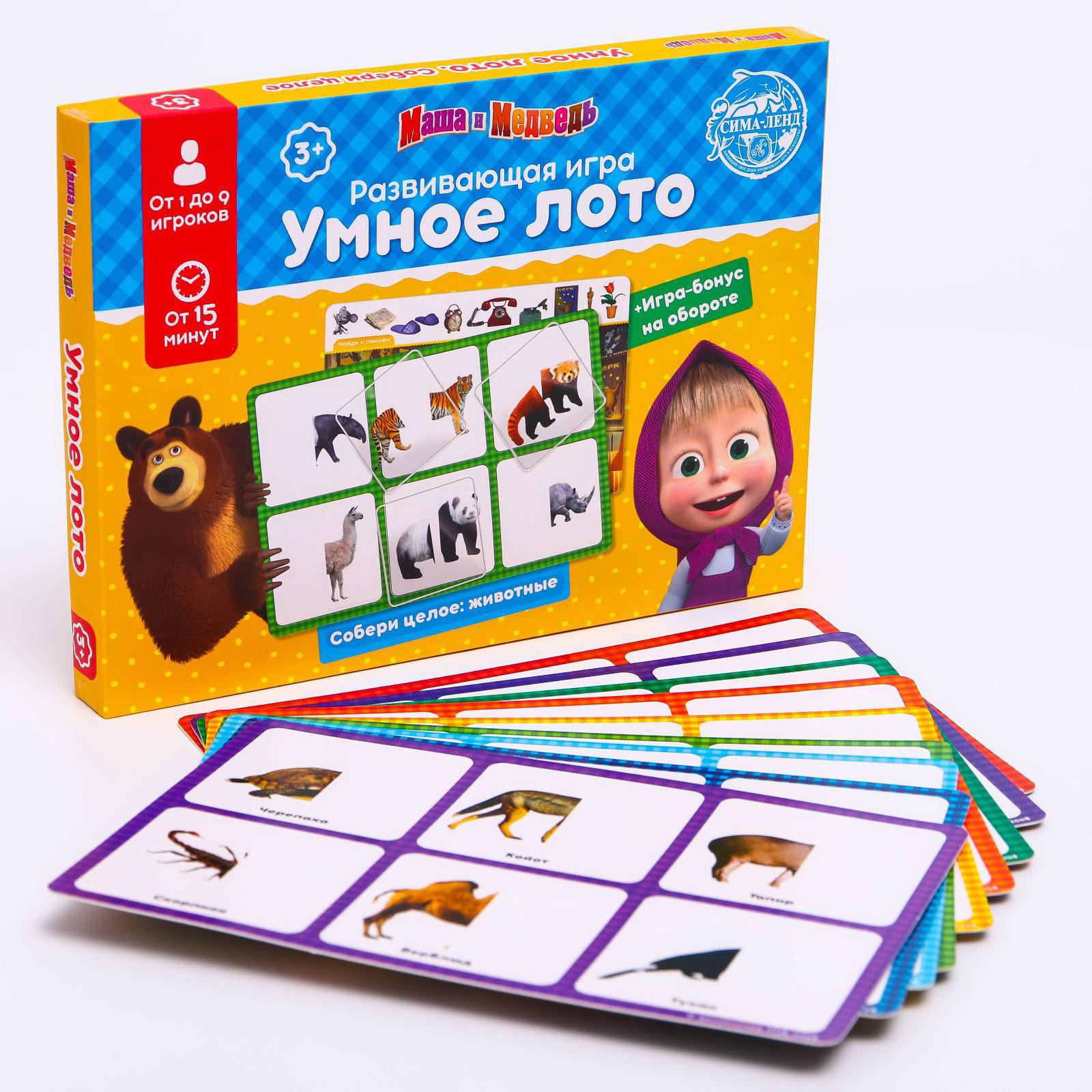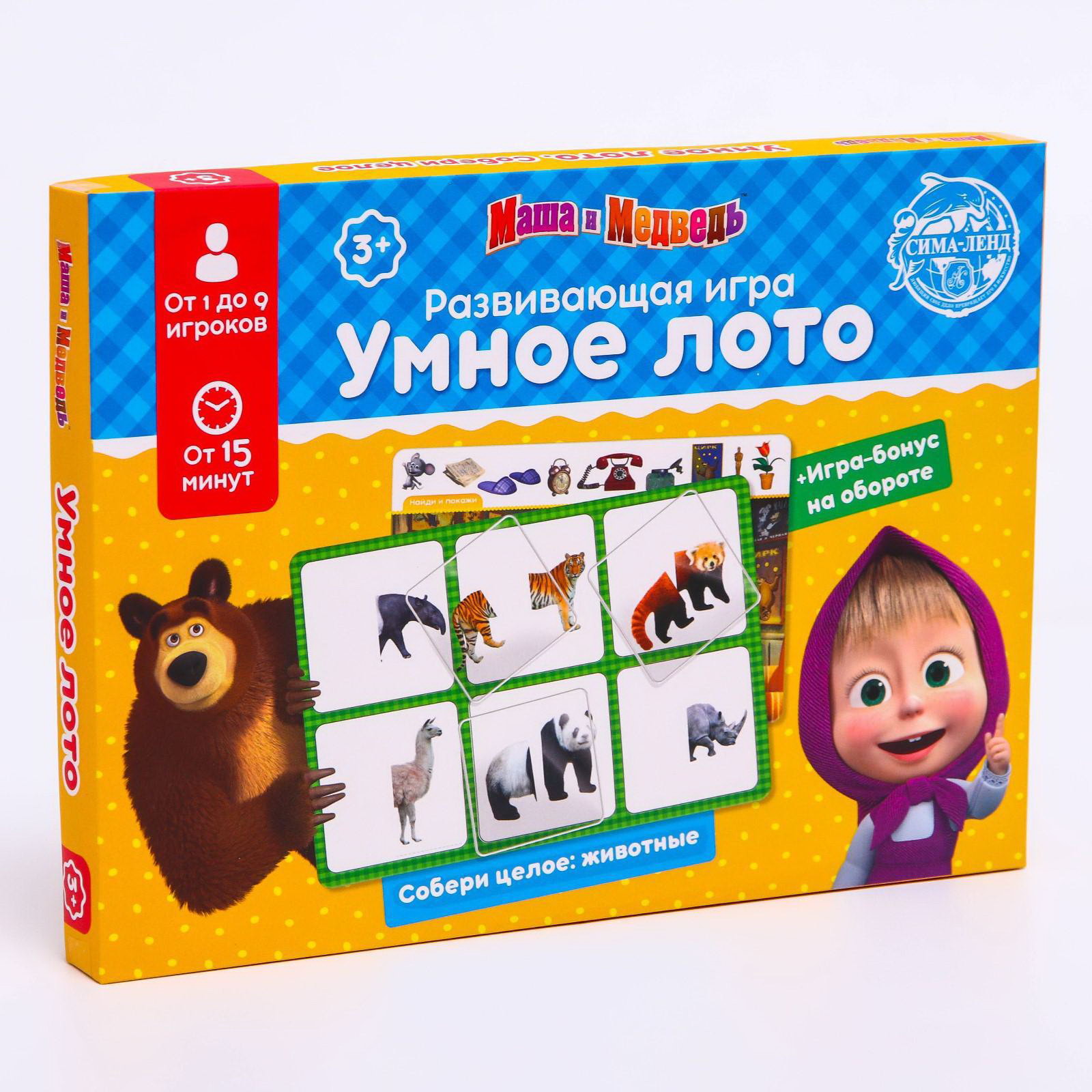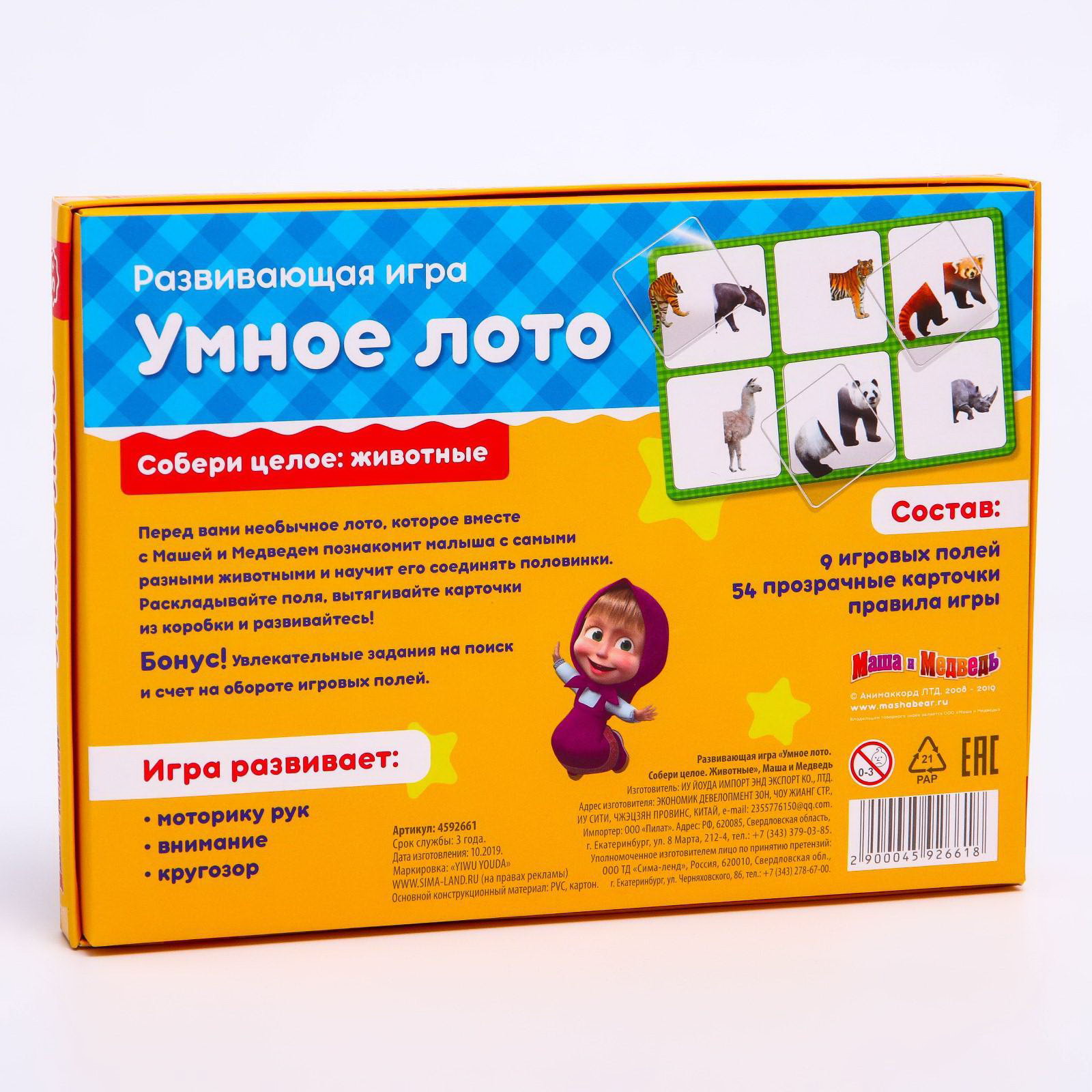 Умное лото "Изучаем животных" собери целое, 17x23x2.7 см., Маша и Медведь, Китай