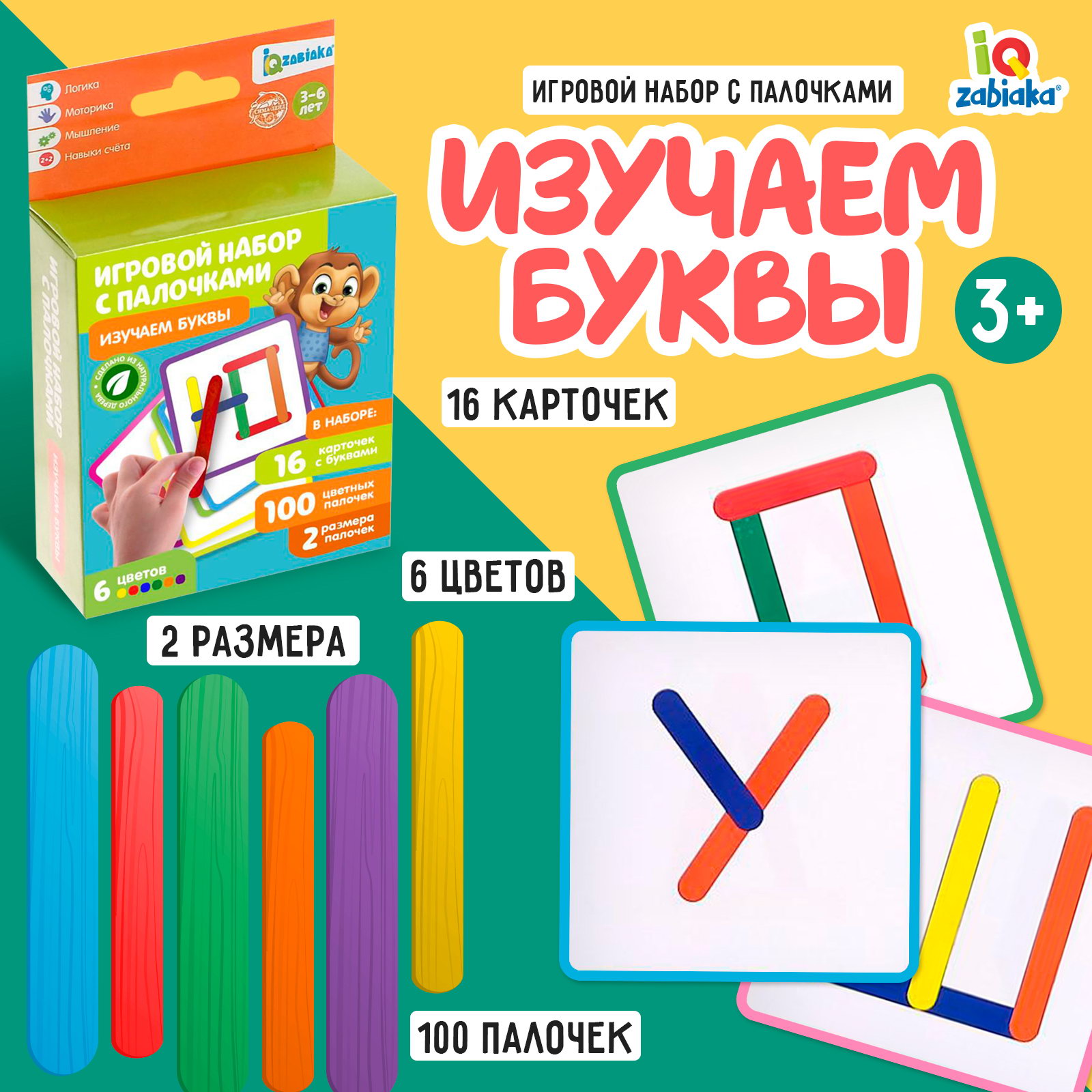 Игровой набор с палочками "Изучаем буквы", 100 палочек, 3+, 110x90x28 см., IQ-ZABIAKA, Китай