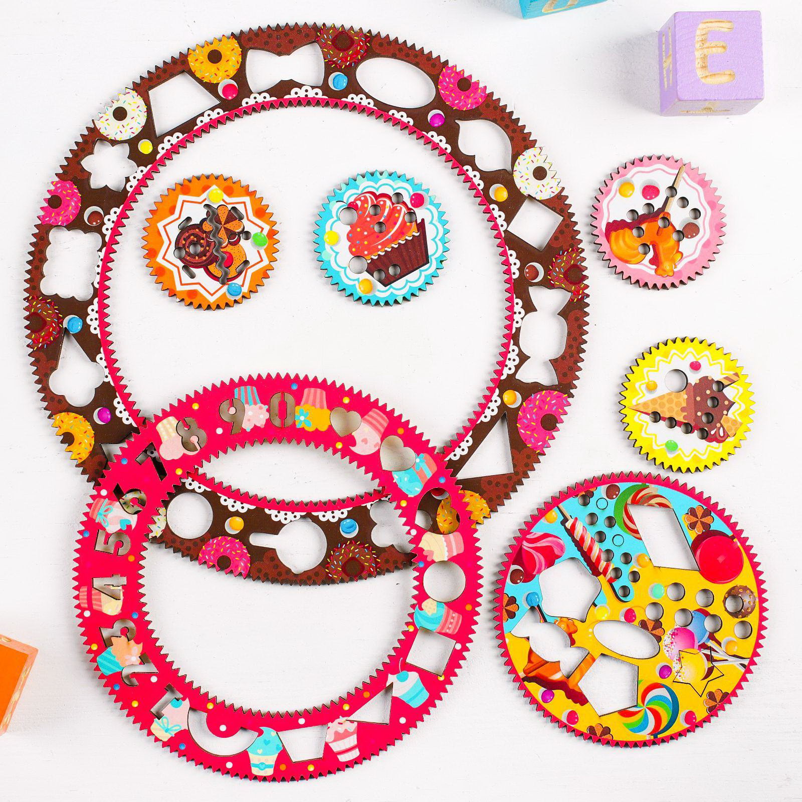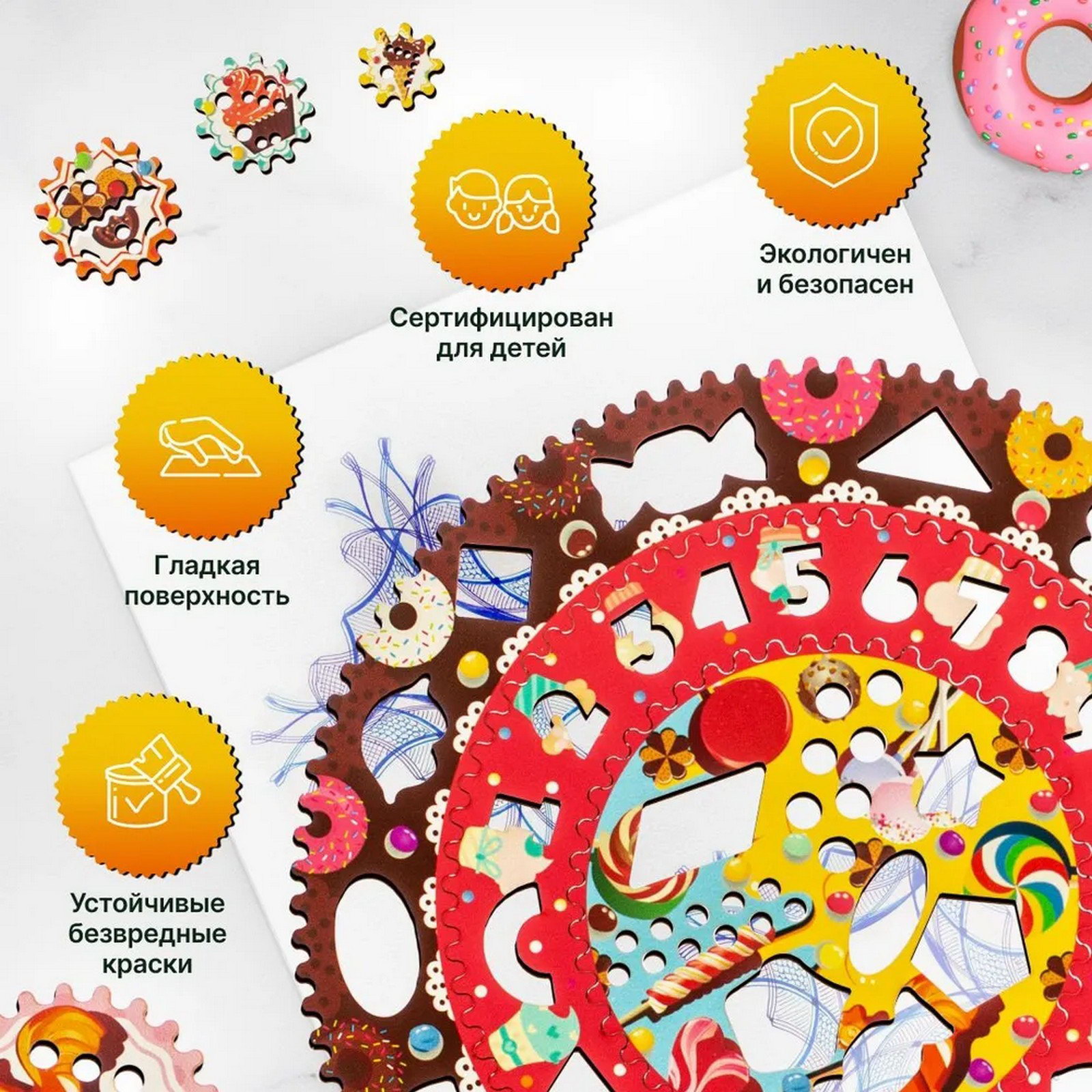 Спирограф "Сладости", 29.4x29.4x0.3 см., WoodLand Toys, Россия