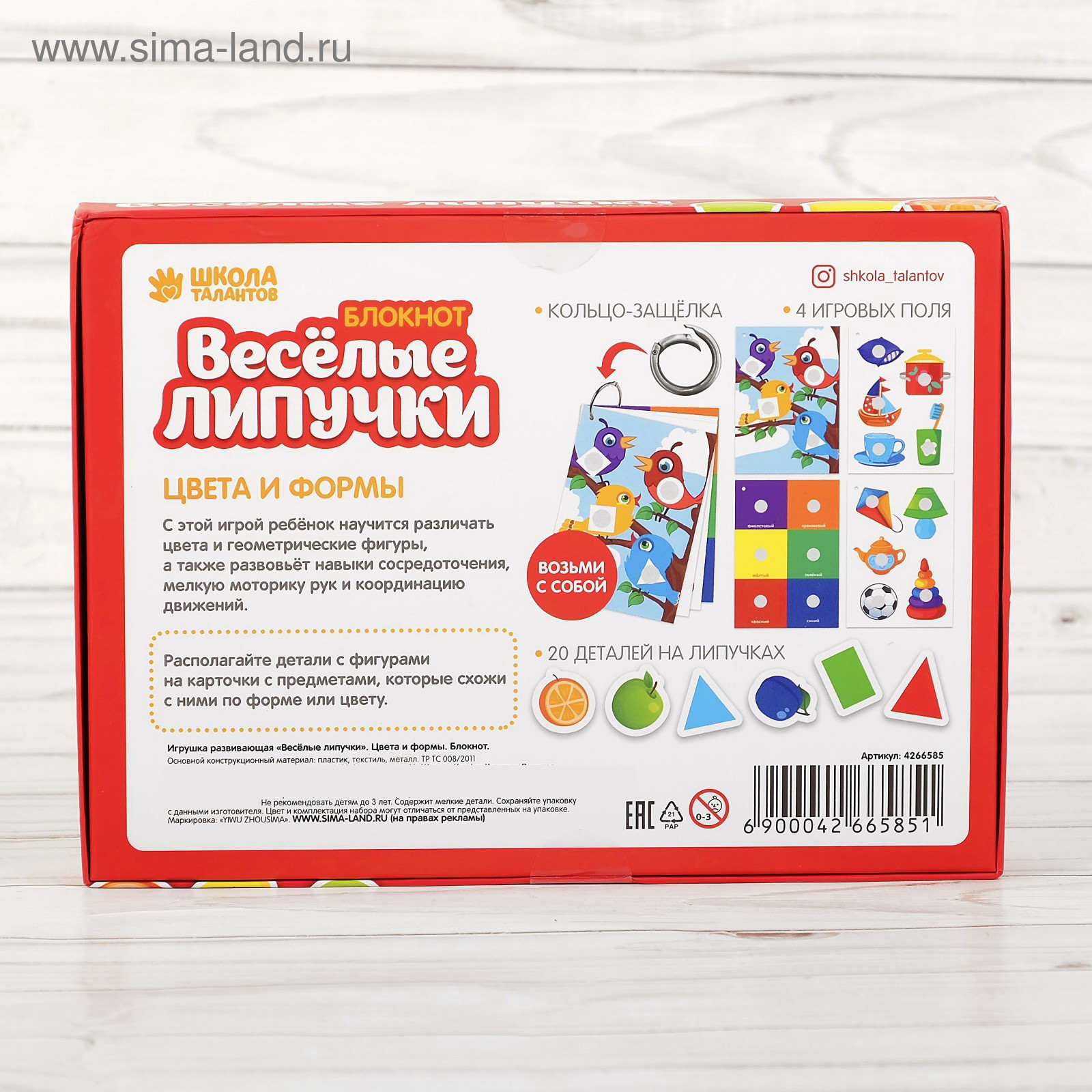 Игрушка развивающая "Весёлые липучки. Блокнот. Цвета и формы", 16.5x22.5x3 см., Весёлые липучки, Китай
