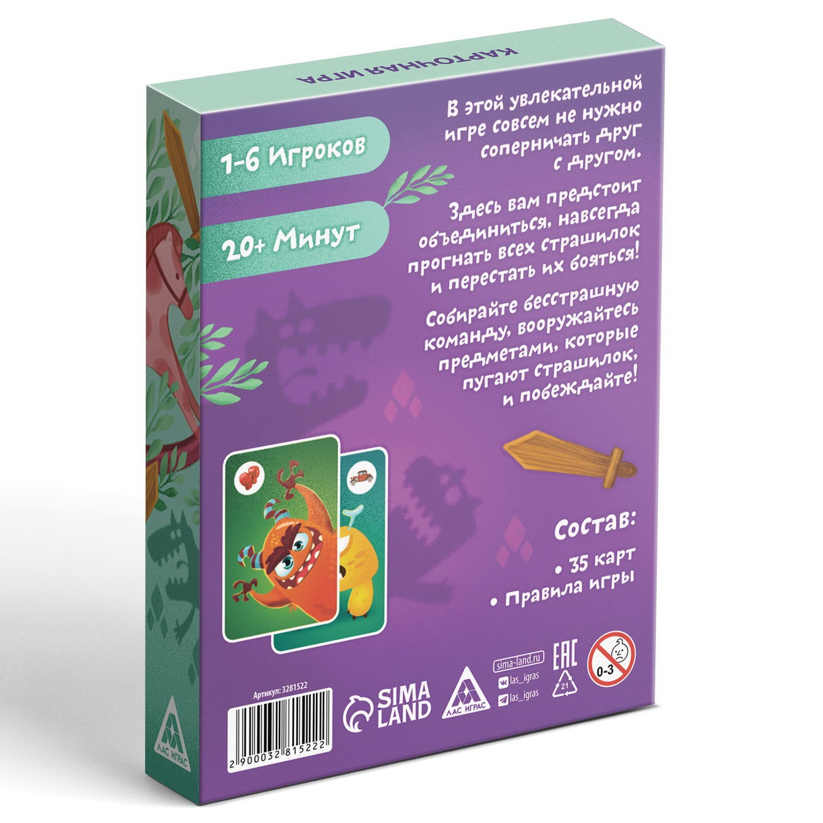 Повод для игры: День Рождения, Детский праздник, Для малышей и дошкольников Количество игроков: 1 игрок, 2 - 4 игрока, 4 - 6 игроков, [1,6] Развитие навыков: Воображение, Память Размер упаковки: 9.5 x 2 x 12.3 см. Время игры: 20 минут Жанр игры: Семейная Жанр игры: Семейная tnved: 9504400000 Вид: Игра на логику Для кого: Унисекс Медиагалерея: Без медиа Возраст: От 4 лет Прогоните всех страшилок из своей комнаты Это увлекательная игра, в которой не нужно соперничать друг с другом. А нужно объединиться, навсегда прогнать страшилок и перестать их бояться. Собирайте команду, вооружайтесь предметами, которые их пугают. и побеждайте! Как играть? В вашем распоряжении карточки с предметами и маленькими монстриками. А ещё где-то неподалёку спит Главный Страшилка, который может проснуться в любой момент! Участникам предстоит переворачивать карточки с предметами: