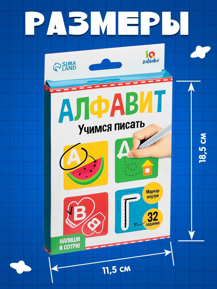 Набор пиши-стирай "Русский алфавит", 32 задания, 16 карт, 3+, 18.3x11.5x1.5 см., IQ-ZABIAKA, Китай