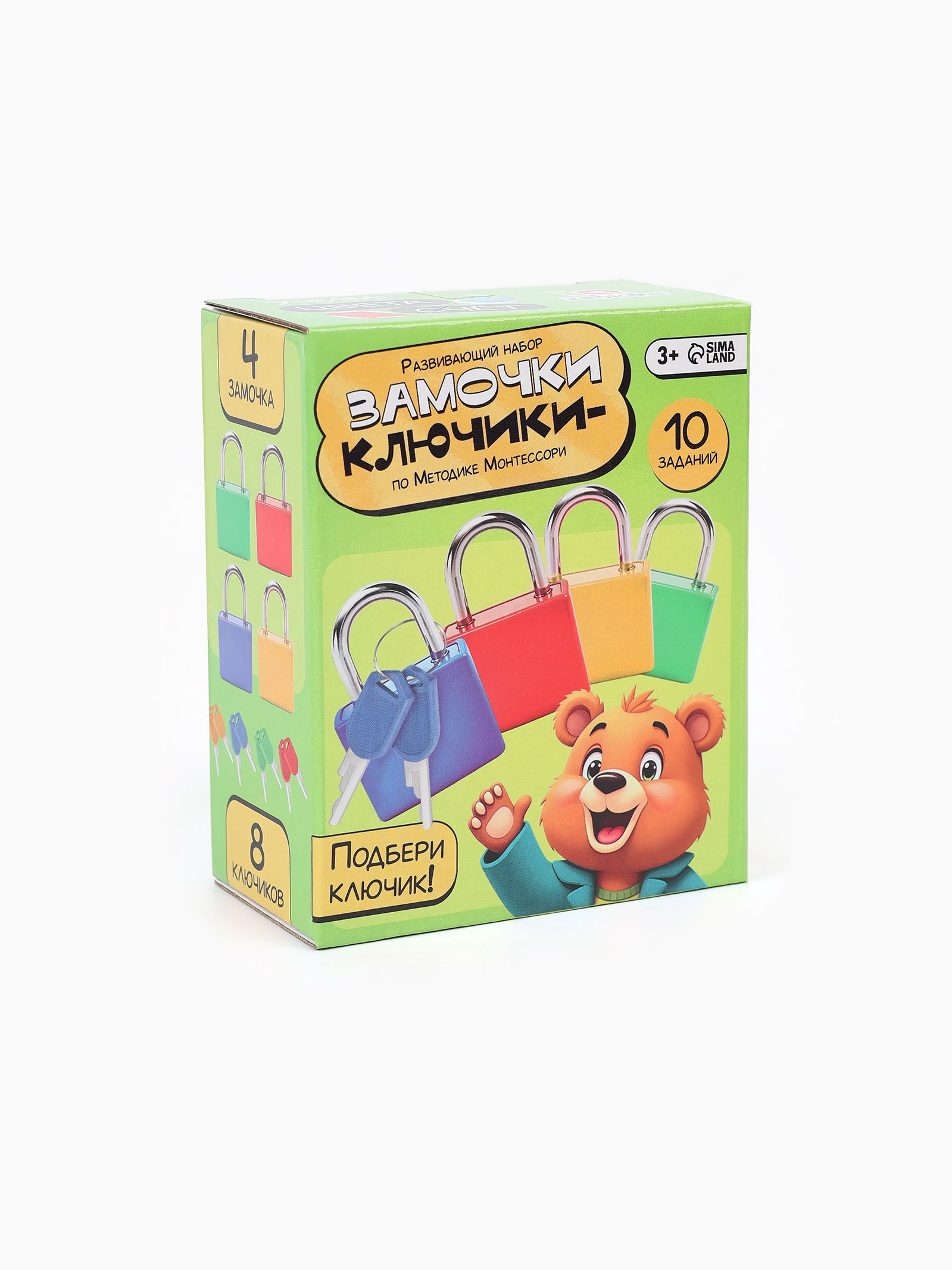 Развивающий набор "Замочки-ключики", 4 замка, 8 ключей, 3+, 12.6x8.2x10 см., IQ-ZABIAKA, Китай