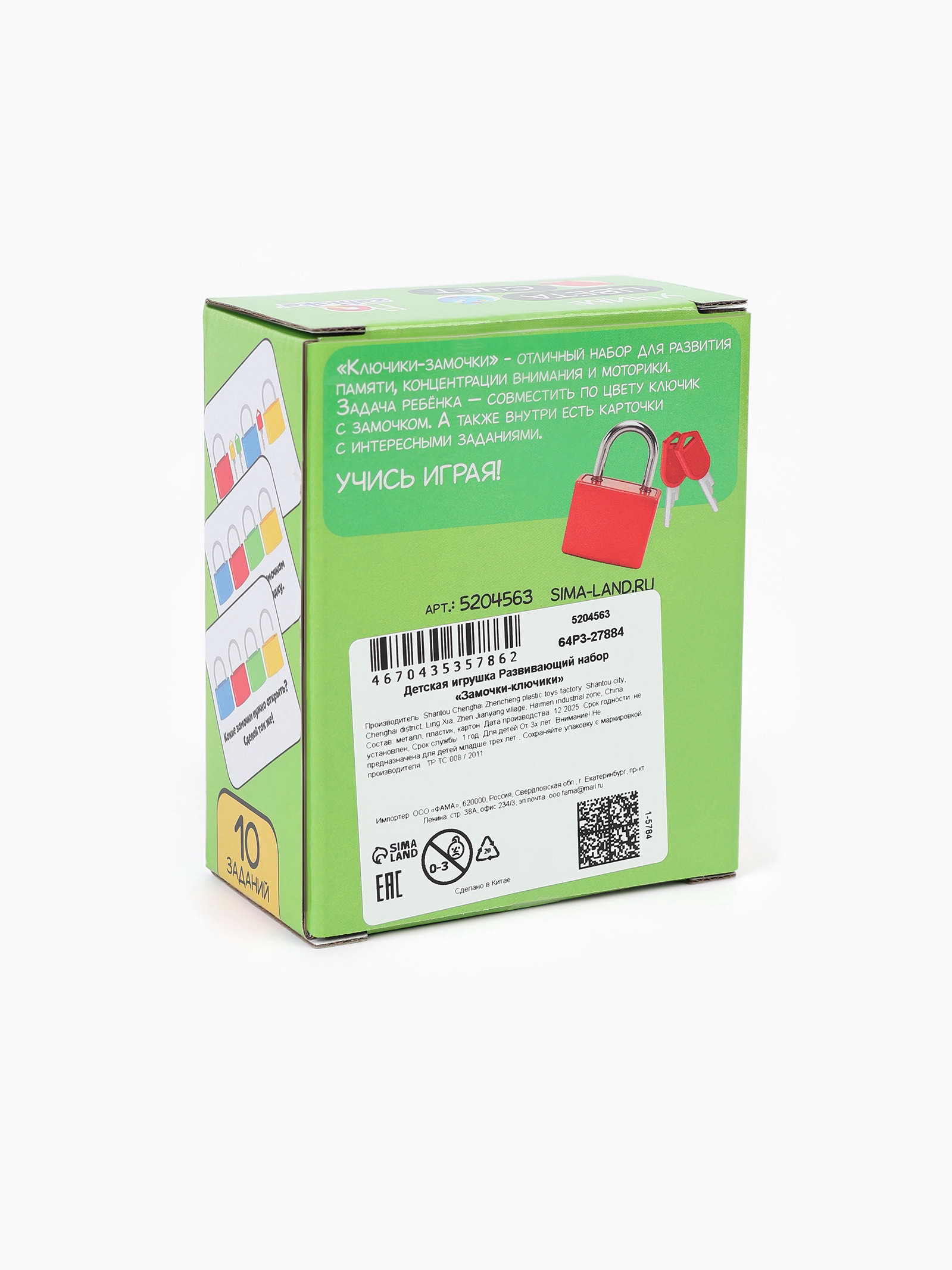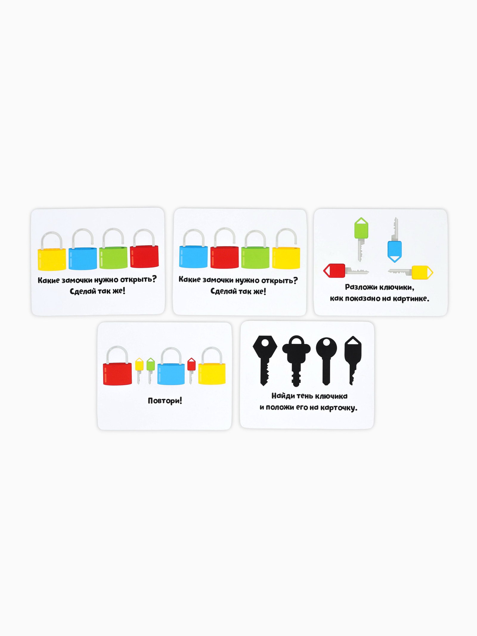 Развитие навыков: Логика, Моторика, Фигуры, цвета Размер упаковки: 4.5 x 13 x 8.5 см. Игрушка с видео: Да Для кого: Унисекс tnved: 9503007000 Возраст: От 3 лет Вид: По методикам "Замочки-ключики" это развивающий набор, который способствует развитию памяти, внимания, мышления. Задача ребёнка: совместить ключик с замочком по цвету. Внутри набора малыш обнаружит карточки с интересными заданиями. В процессе игры ребёнок познакомится с цветами, запомнит их. Набор рекомендован детям старше 3 лет. | ||