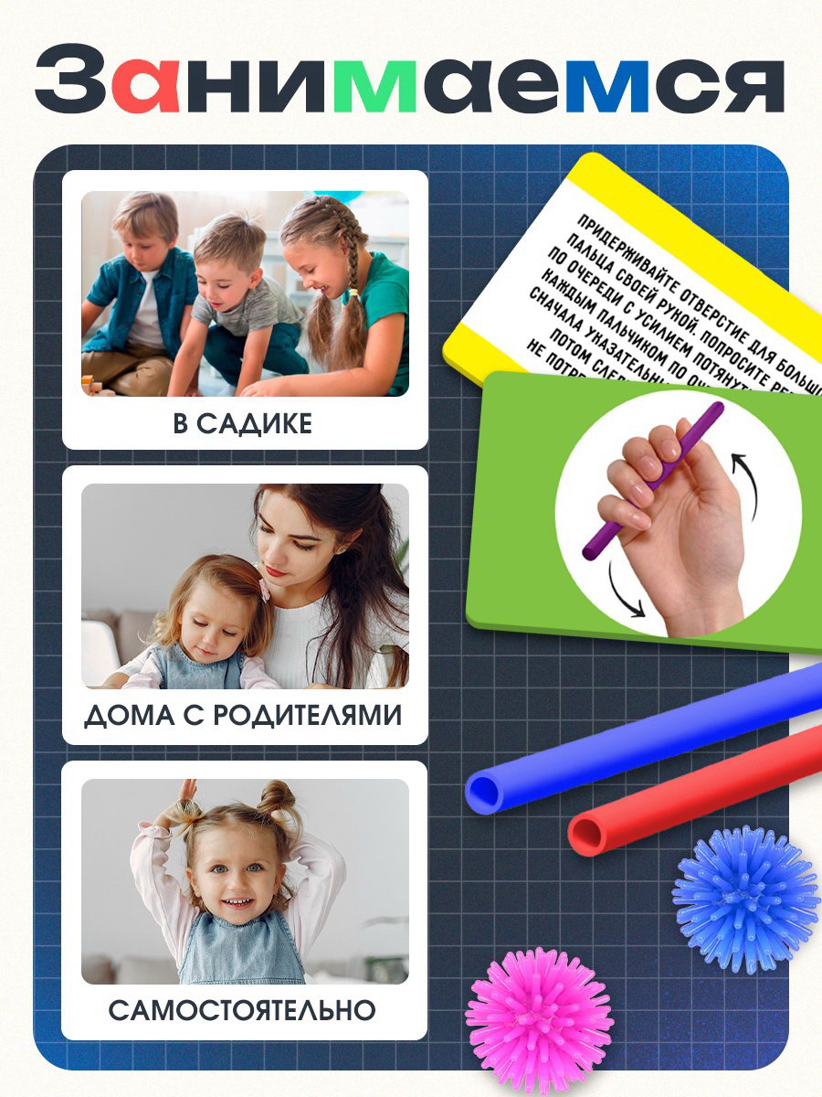Развитие навыков: Воображение, Логика, Моторика, Память, Сюжетные игры, Фигуры, цвета Размер упаковки: 10.5 x 3.5 x 12.5 см. Для кого: Унисекс tnved: 9503007000 Возраст: От 3 лет Вид: Логопедические наборы Набор "Пальчиковая гимнастика" это комплекс упражнений для тренировки мышц рук, логики и памяти. Занятия с карточками и тактильными элементами помогают детям от 3 лет улучшить речь, координацию и познавательные навыки в увлекательной форме. Особенности