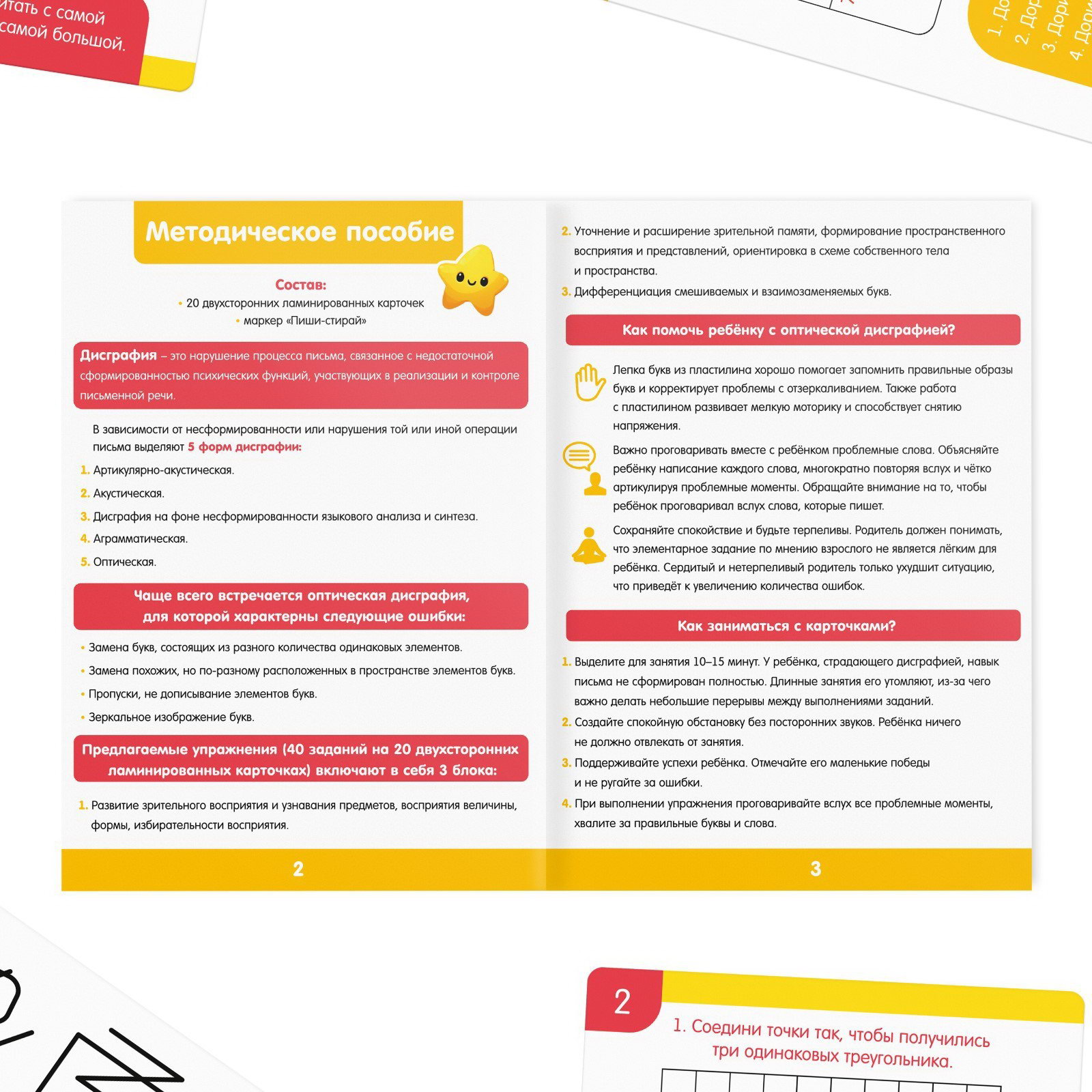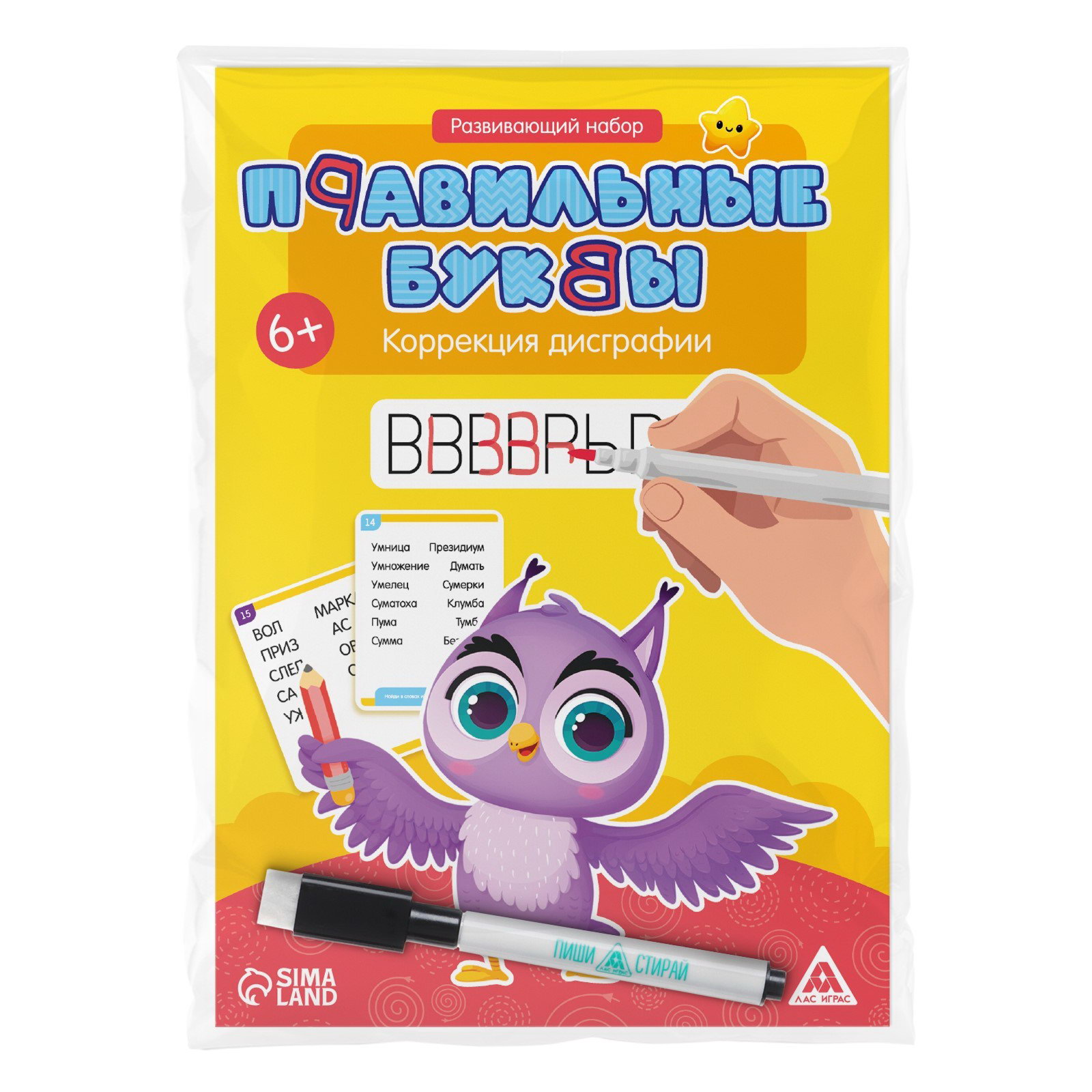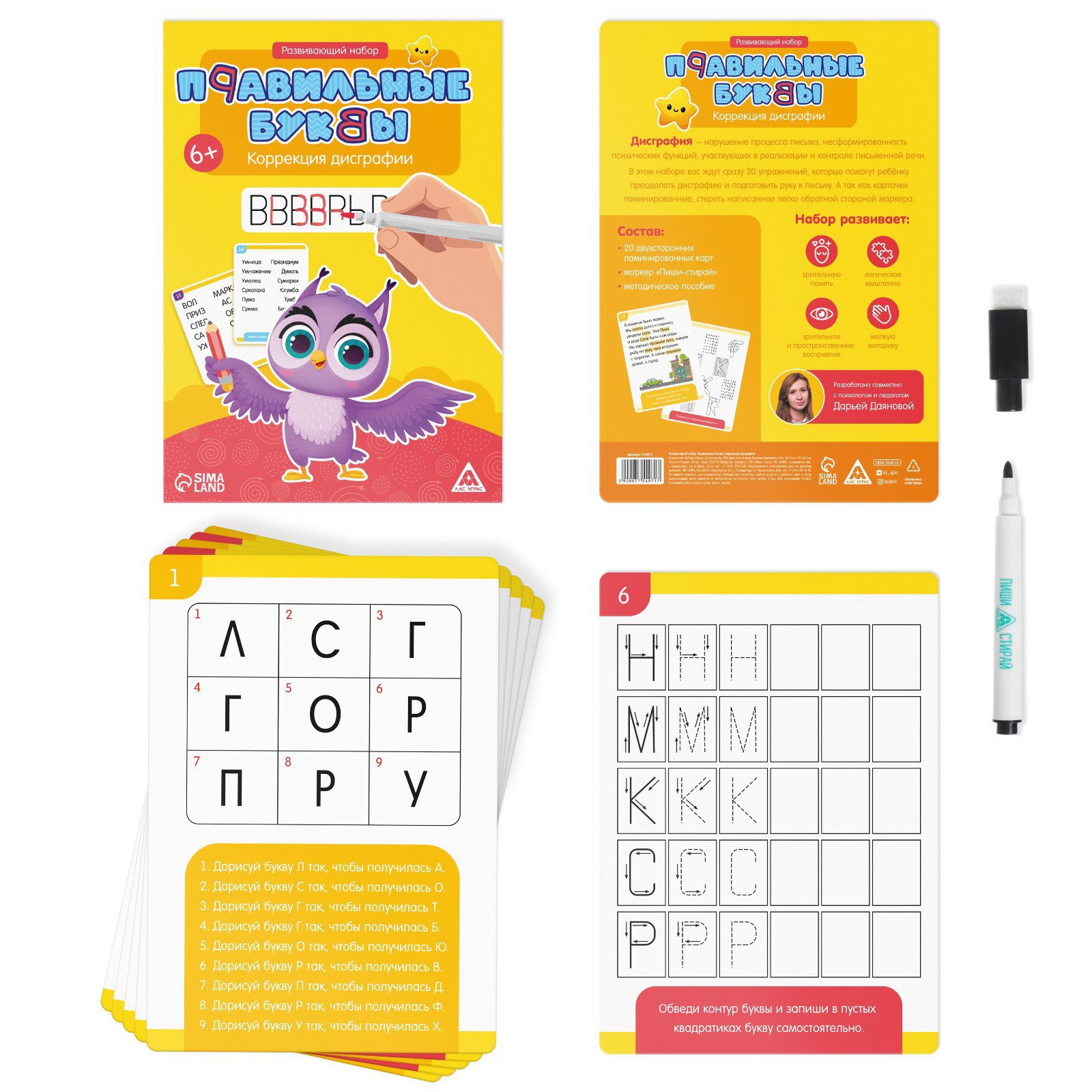 Развивающий набор "Правильные буквы. Коррекция дисграфии", маркер, 20 карточек, 6+, ЛАС ИГРАС, Китай