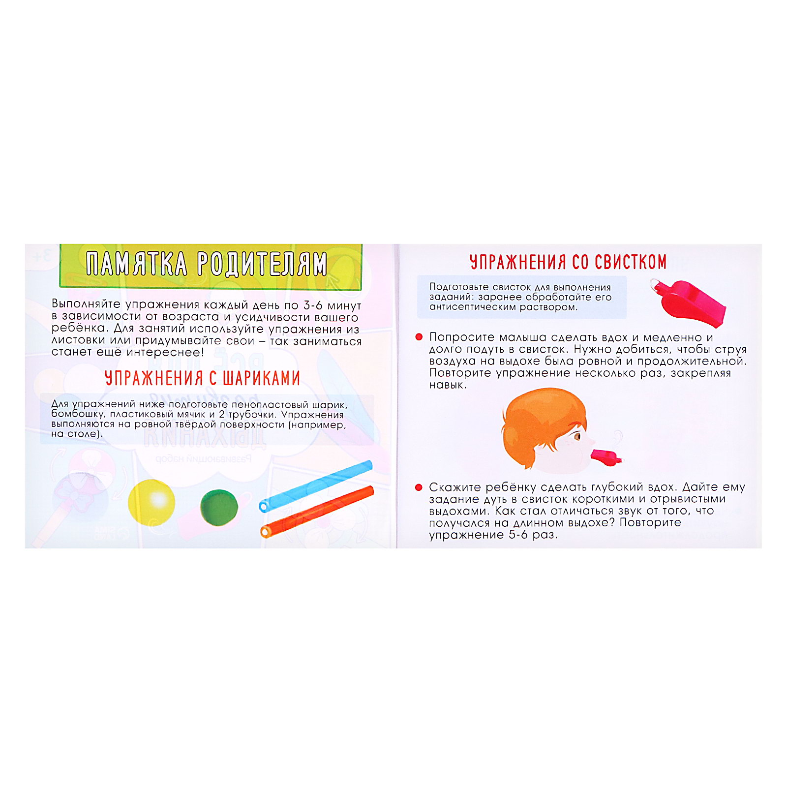 Развивающий набор "Всё для развития дыхания", 15x18x3.5 см., IQ-ZABIAKA, Китай