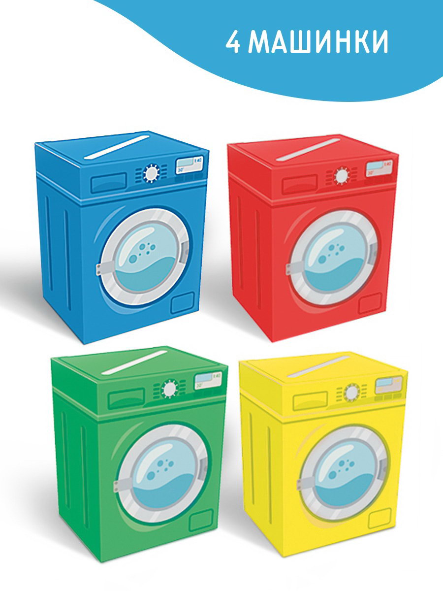 Развитие навыков: Логика, Моторика, Фигуры, цвета Размер упаковки: 17 x 17 x 3.5 см. Вид: Игры с прищепками Возраст: От 3 лет Для кого: Унисекс Количество игроков: От 1 игрока Время игры: 15 минут tnved: 9504908000 Вот это да, сколько грязной одежды накопилось! Ещё чуть-чуть, и вам будет не в чем ходить. Пришла пора устроить большую стирку! Бегите к стиральным машинкам, сортируйте вещи по цветам, стирайте их, а затем отправляйте сушиться. Только будьте внимательны: каждый предмет одежды можно зацепить прищепками только своего цвета. Состав: