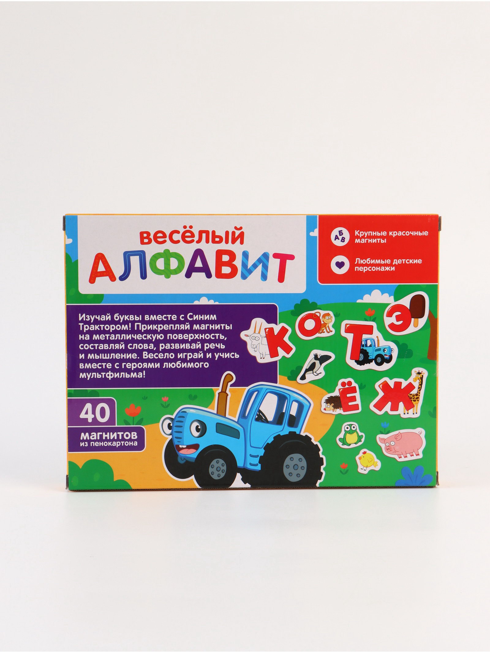 Магнитный игровой набор "Весёлый алфавит", 40 элементов, 3x25x18.5 см., Синий трактор, Китай