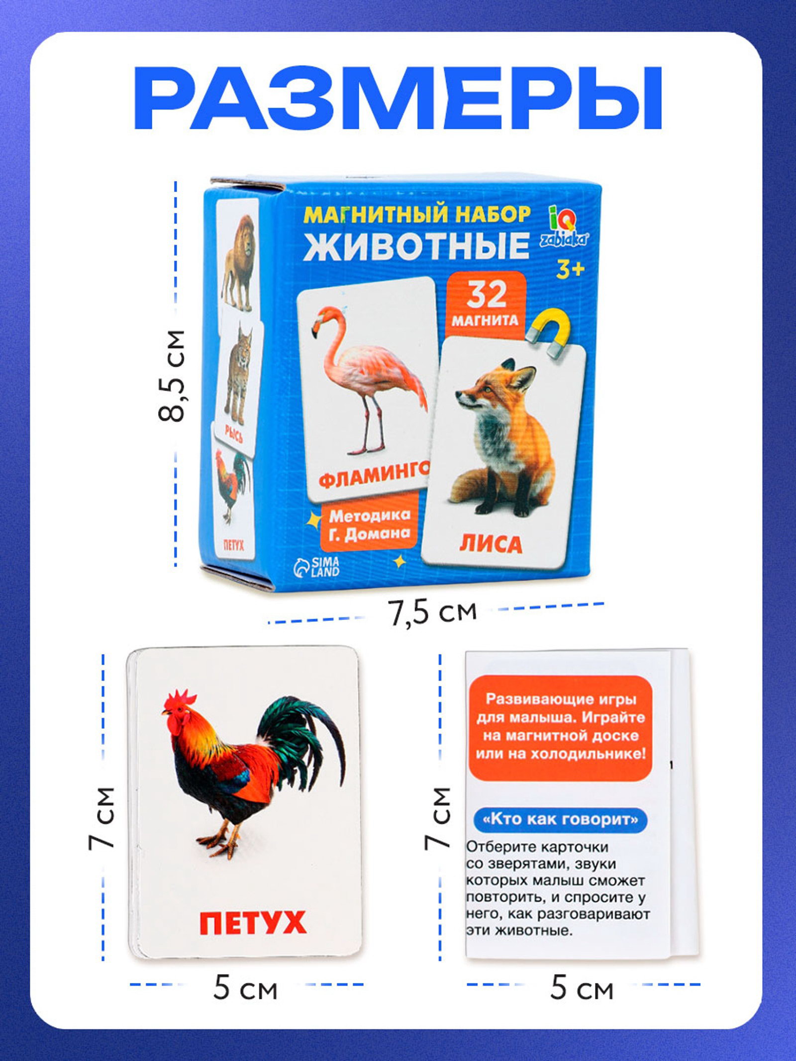 Магнитные карточки по методике Домана "Животные", 32 карты, 3+, 4.1x7.5x8.7 см., IQ-ZABIAKA, Китай
