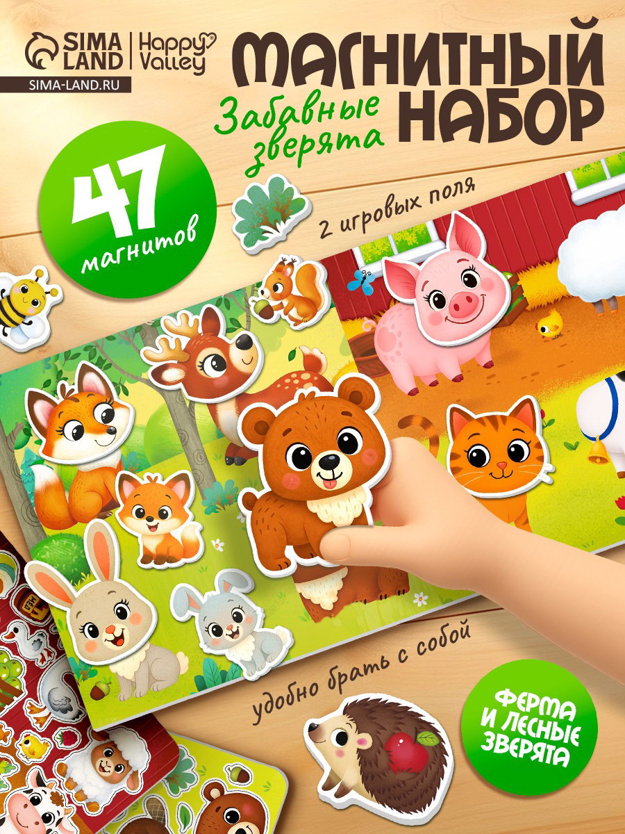 Развитие навыков: Воображение, Моторика, Мышление Размер упаковки: 0.5 x 23 x 20.5 см. tnved: 9503007000 Для кого: Унисекс Вид: Магнитные игры Возраст: От 3 лет Магнитный набор "Забавные зверята" это увлекательная развивающая игра для детей, которая знакомит с домашними и лесными животными в игровой форме. Яркие магнитные фигурки легко крепятся к игровым полям, позволяя ребёнку создавать сценки, подбирать персонажей и придумывать собственные истории. Набор удобно брать с собой в дорогу или на прогулку компактный формат и прочные магниты делают игру комфортной в любых условиях. Особенности
