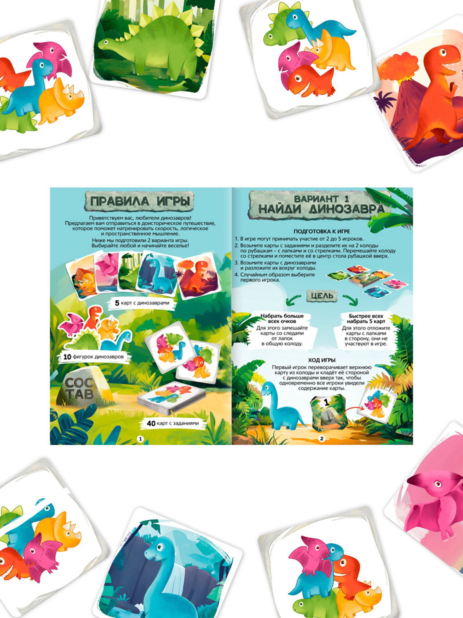 Развитие навыков: Логика, Пространственное мышление Размер упаковки: 9 x 8.5 x 2.5 см. tnved: 9504400000 Возраст: От 5 лет Для кого: Унисекс Вид: Развитие мышления Отправляйтесь в доисторическое путешествие вместе с настольной игрой "Динопоединок", которая поможет натренировать скорость, логическое и пространственное мышление! Ход игры: Вариант 1 Переворачивайте карточку, как можно скорее находите нужного динозавра и накрывайте его ладонью. Цель: набрать наибольшее количество очков или быстрее всех набрать 5 карт! Вариант 2 (для двух игроков) Переворачивайте карточку и как можно скорее составляйте правильно комбинацию динозавриков, повторяя изображение. Цель: набрать больше карт, чем соперник! Состав игры:
