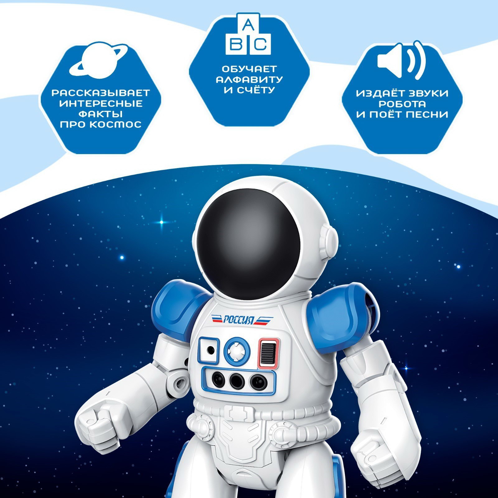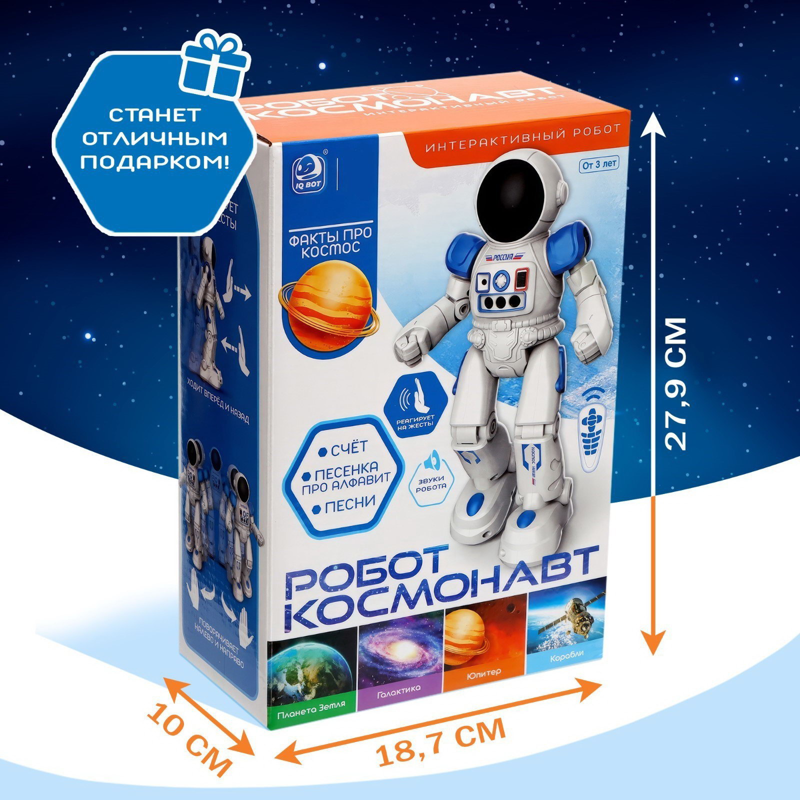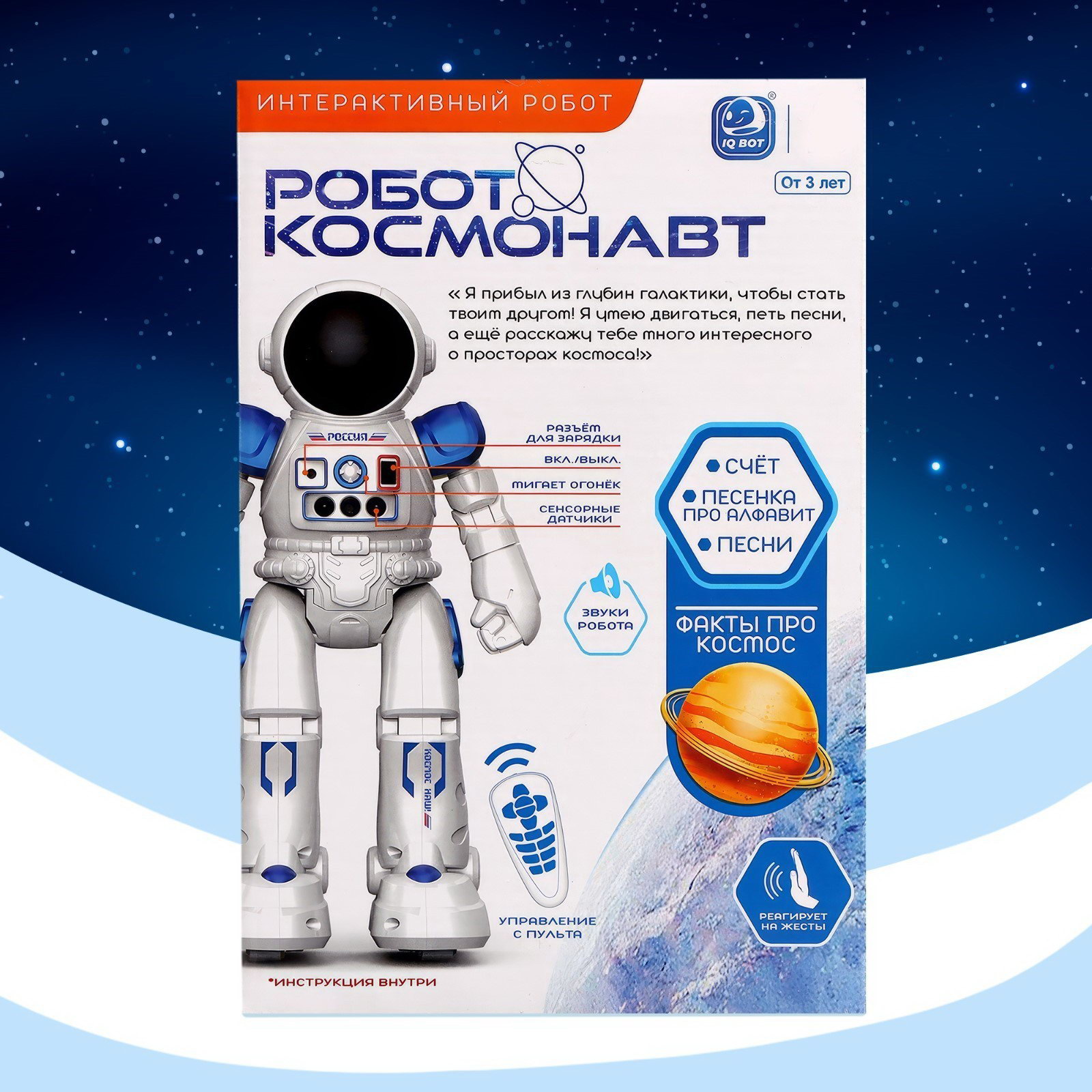 Робот радиоуправляемый "Космонавт", интерактивный, русский чип, жесты, с аккумулятором, 10x19x28.5 см., IQ BOT, Китай