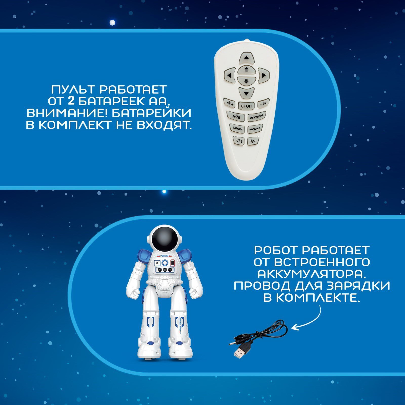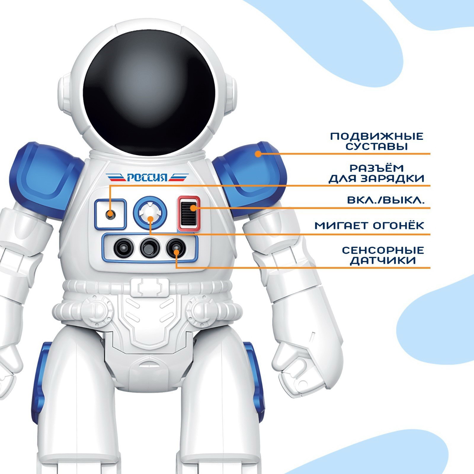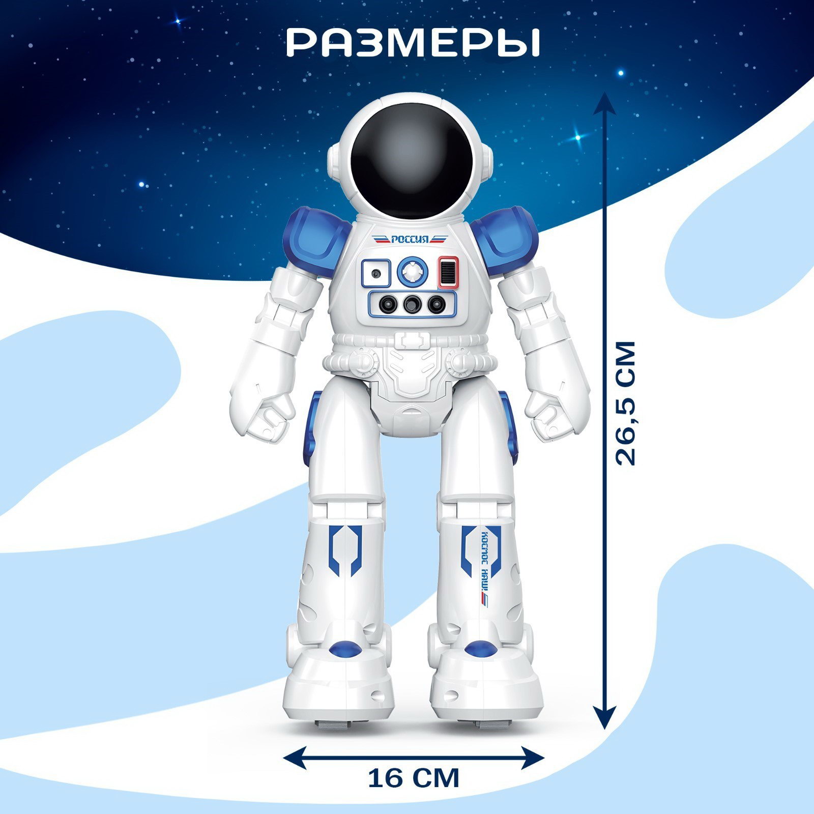 Дополнительные функции: Говорящая, Звуковые эффекты Размер упаковки: 10 x 28.5 x 19 см. Тип механизма: Радиоуправление Игрушка с видео: Да Для кого: Для мальчика Возраст: От 5 лет tnved: 9503008000 Тип питания: От аккумулятора Тип питания пульта управления: От батареек Робототехника: Нет Время работы, мин: 60 Количество батареек: 2 Русская упаковка: Да Русская озвучка: Да Радиус действия, м: 15 Вид зарядного устройства: Провод USB Типоразмер батареек: AA (LR6) Вид упаковки: Коробка картонная Форма: Классический робот Говорящий робот "Космонавт" создан специально для поклонников высоких технологий. Ведь кроме дистанционного управления предусмотрена функция управления жестами! Особенности робота "Космонавт" ![]() Чем полезны игры с роботом Благодаря управлению с помощью жестов ребёнок начнёт лучше ориентироваться в пространстве. Робот расширит кругозор малыша и поможет потренировать слуховое восприятие. | ||