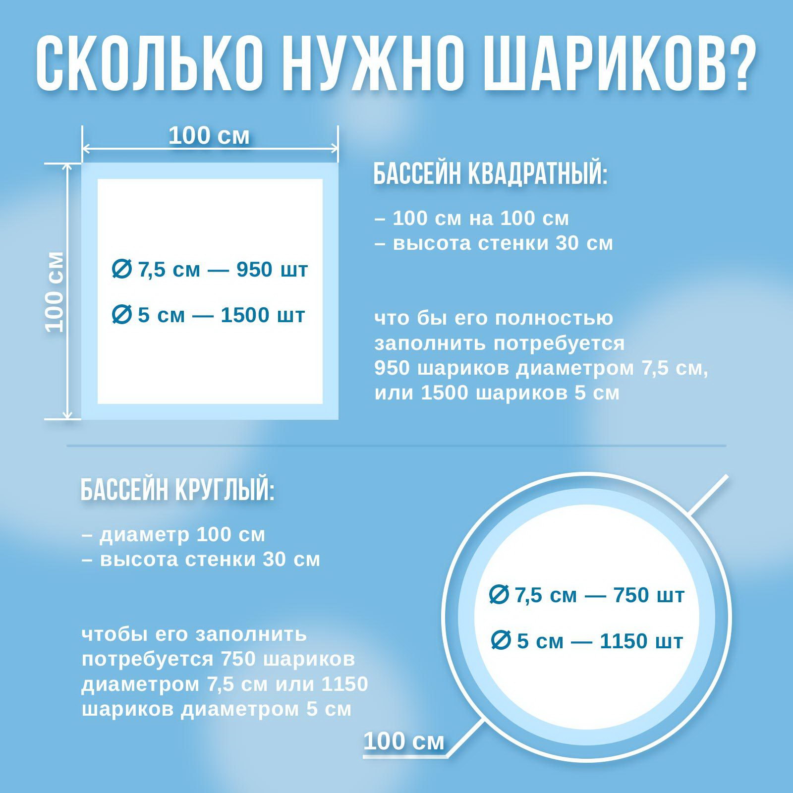Размер упаковки: 30 x 50 x 30 см. tnved: 9503007000 Возраст: От 3 лет В наборе, шт.: 150 Цвет: Белый Яркие разноцветные шарики для сухого бассейна добавят в детские игры больше позитива, веселья и азарта! Выполнены в сочных глянцевых красках, они отлично развивают у малышей восприятие цвета. Шариками можно наполнить детскую палатку с дном или бассейн. В них ребёнок будет "купаться", валяться, а также сможет подбрасывать лёгкие шарики вверх и учиться их ловить. В процессе игры у юных непосед развиваются такие полезные навыки, как координация движений, меткость, ловкость и умение взаимодействовать с другими детьми. Полная безопасность Товар разработан и произведён в России из российских материалов и соответствует всем ГОСТам, имеет множество преимуществ: