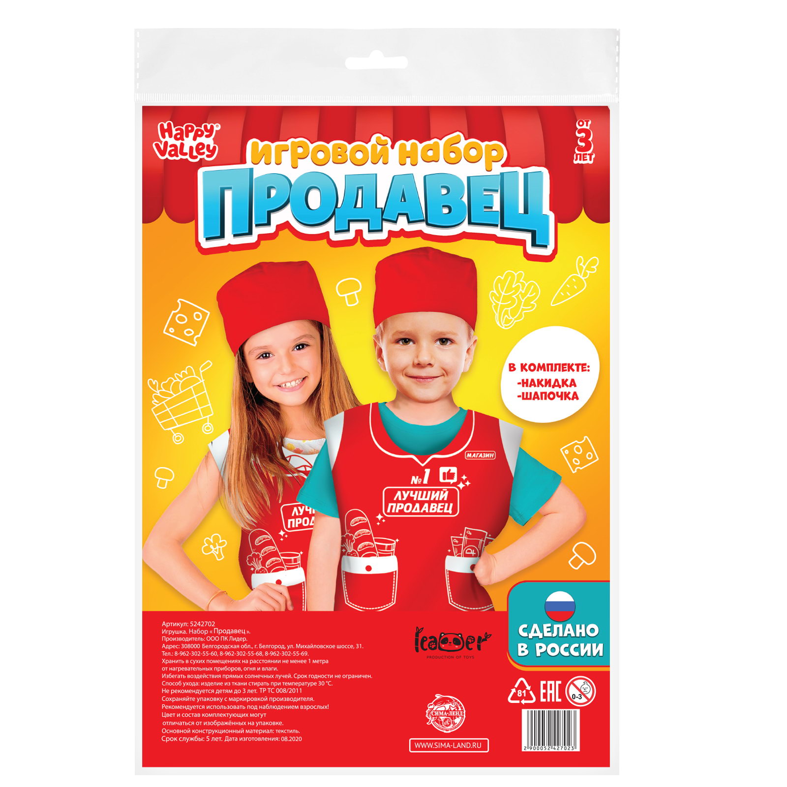 Развиваемся играя Игра в продавца учит ребёнка считать, общаться и фантазировать. Накидку используют на творческих занятиях с сухими материалами он защитит одежду во время лепки или рисования. Набор подходит мальчикам и девочкам от 3 лет. Качественные материалы, продуманный крой и яркий дизайн. Набор произведен в России с учётом требований к детским товарам. Подарите ребёнку возможность примерить интересную роль пусть игра станет ещё увлекательнее! | ||