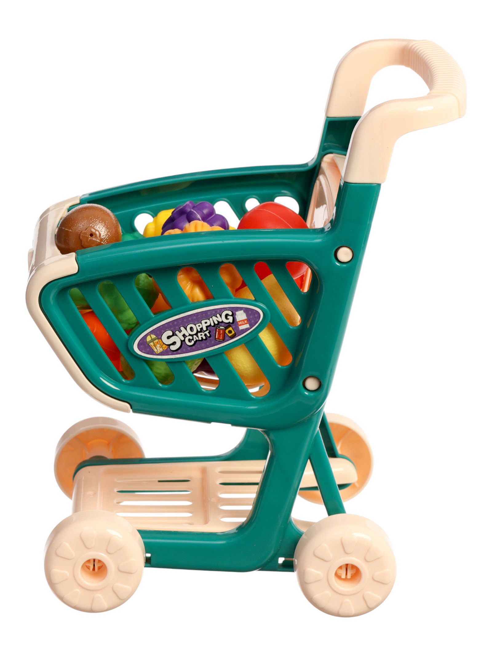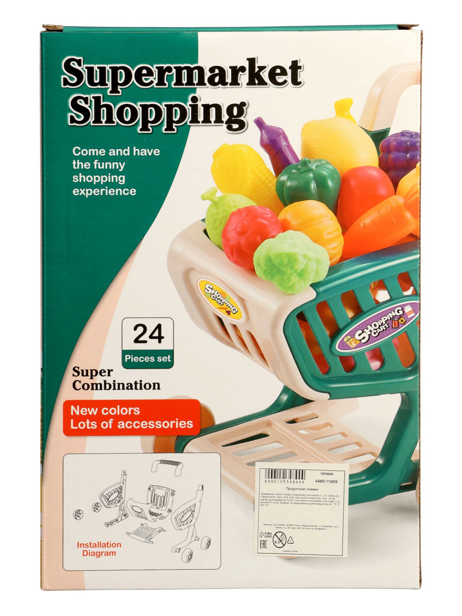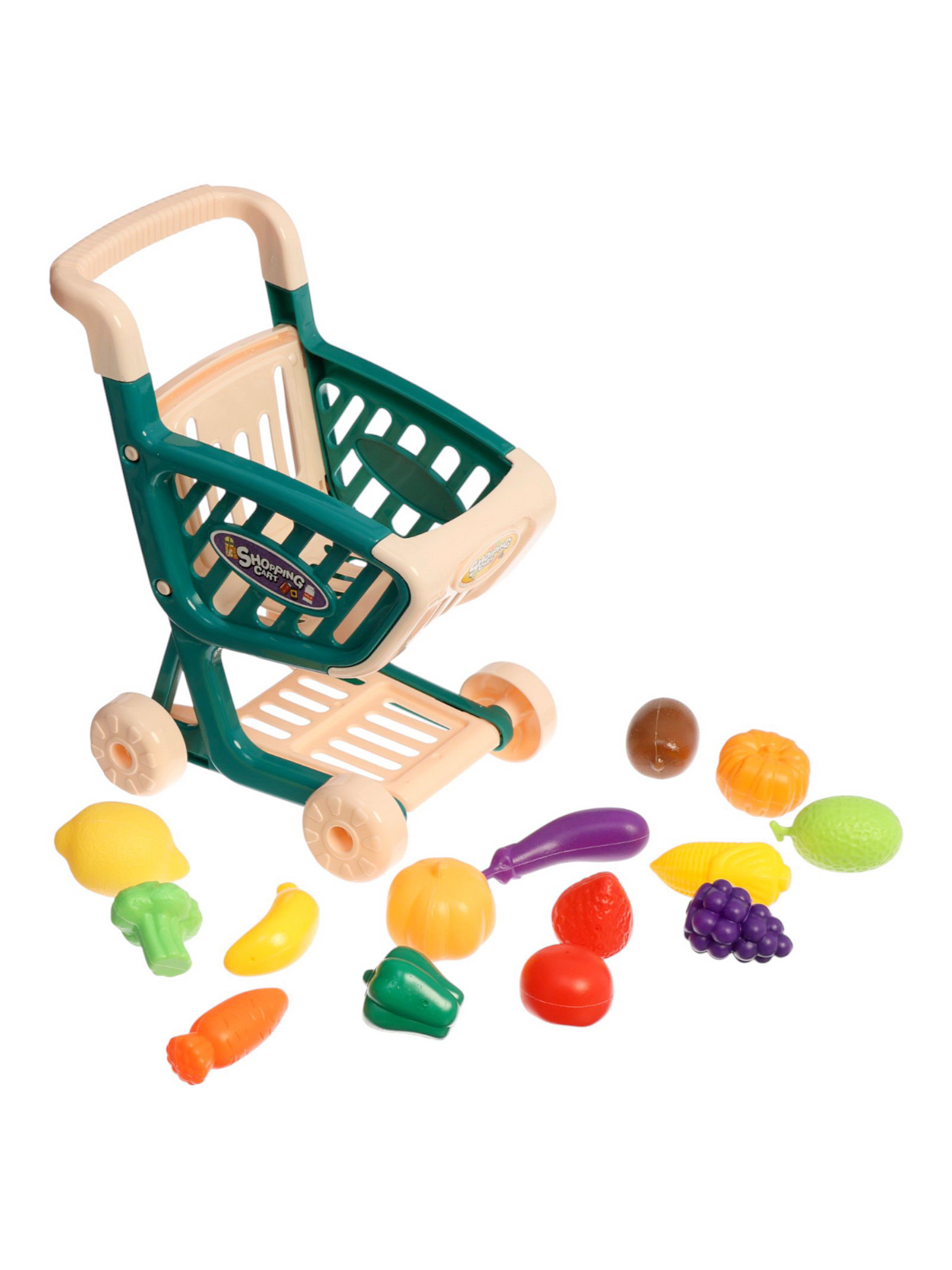 Продутовая тележка "Магазинчик", с овощами и фруктами, 15 предметов, 5x18x27 см., Китай