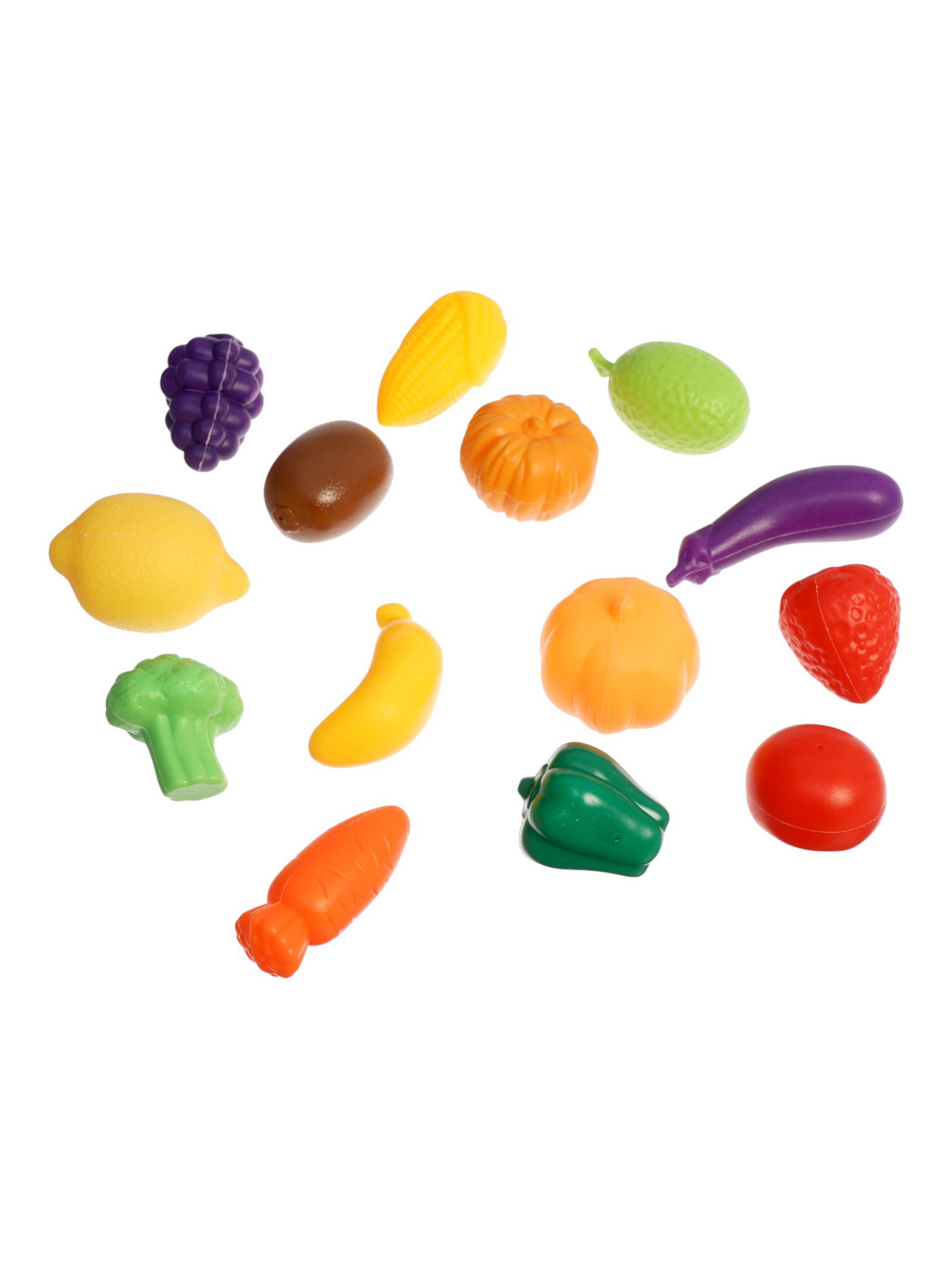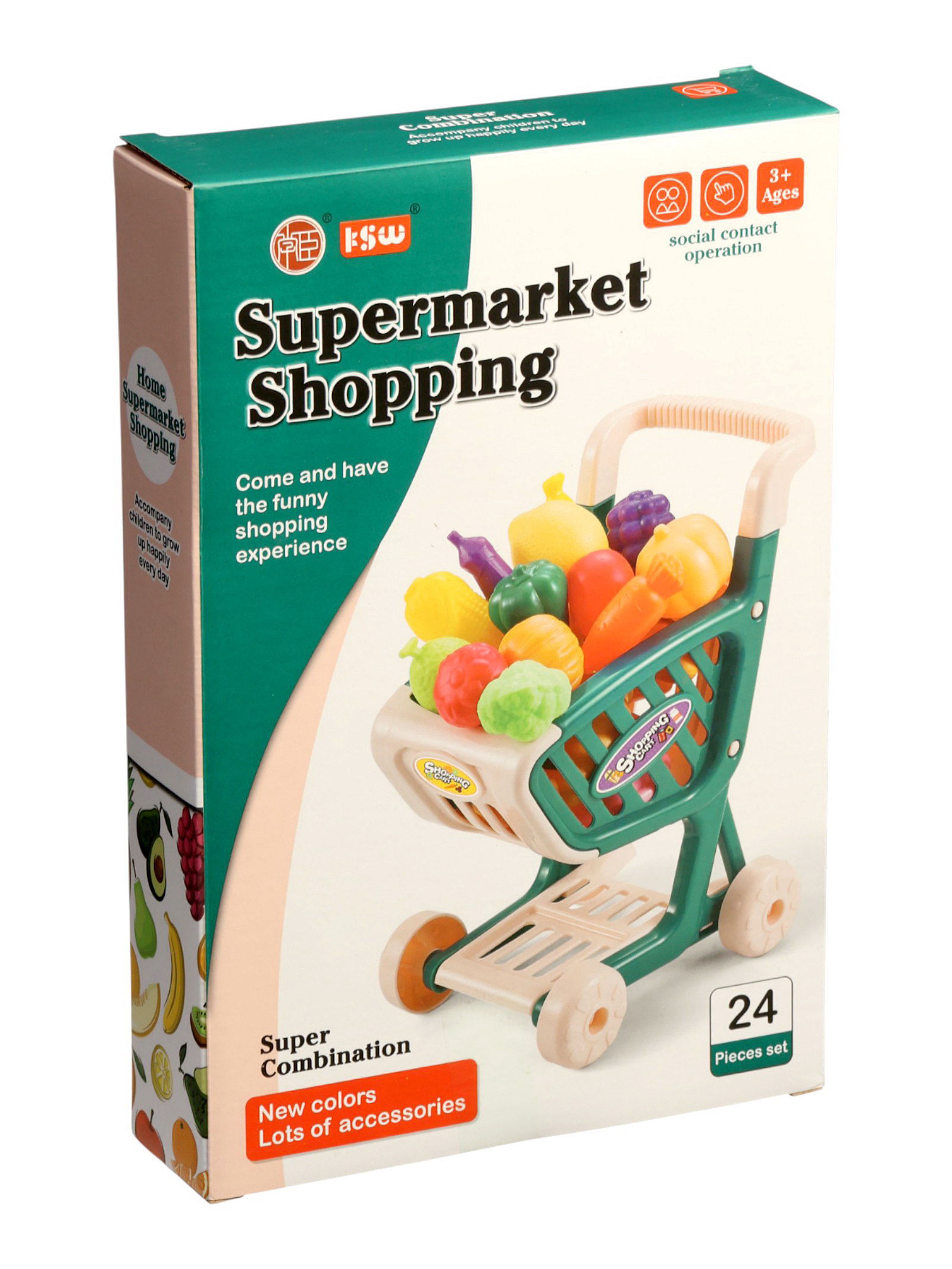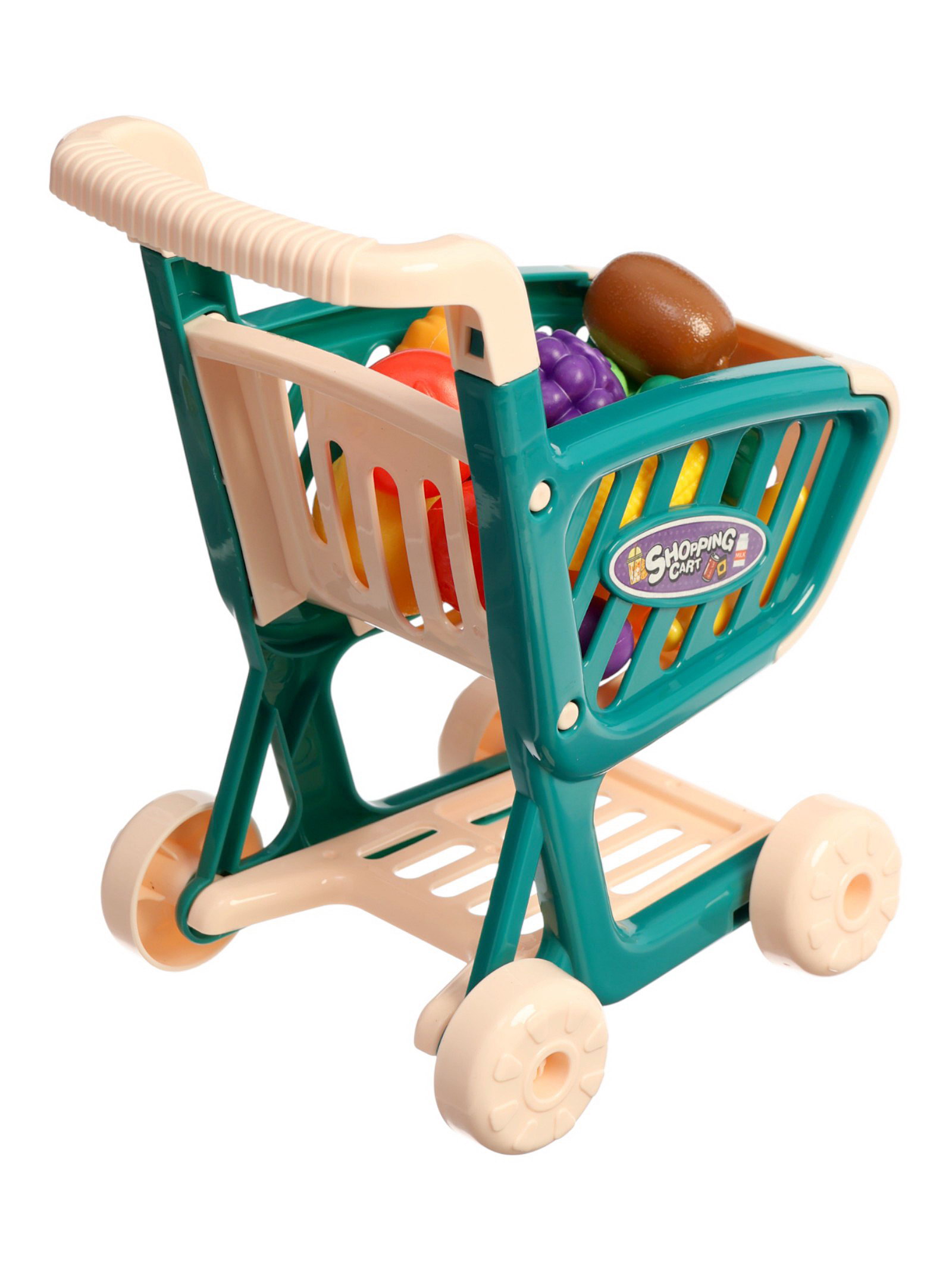 Продутовая тележка "Магазинчик", с овощами и фруктами, 15 предметов, 5x18x27 см., Китай