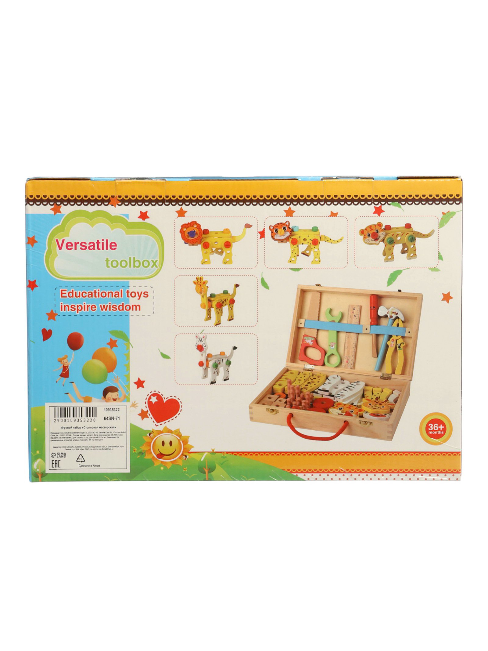 Набор инструментов детский "Собери животных", деревянный конструктор, 21x30.8x6.7 см., Китай