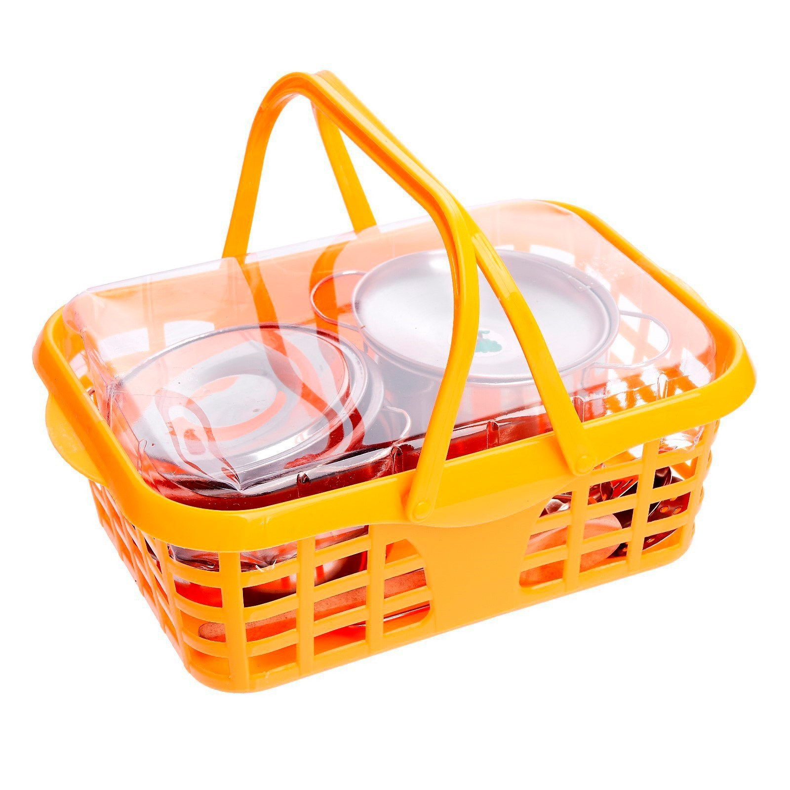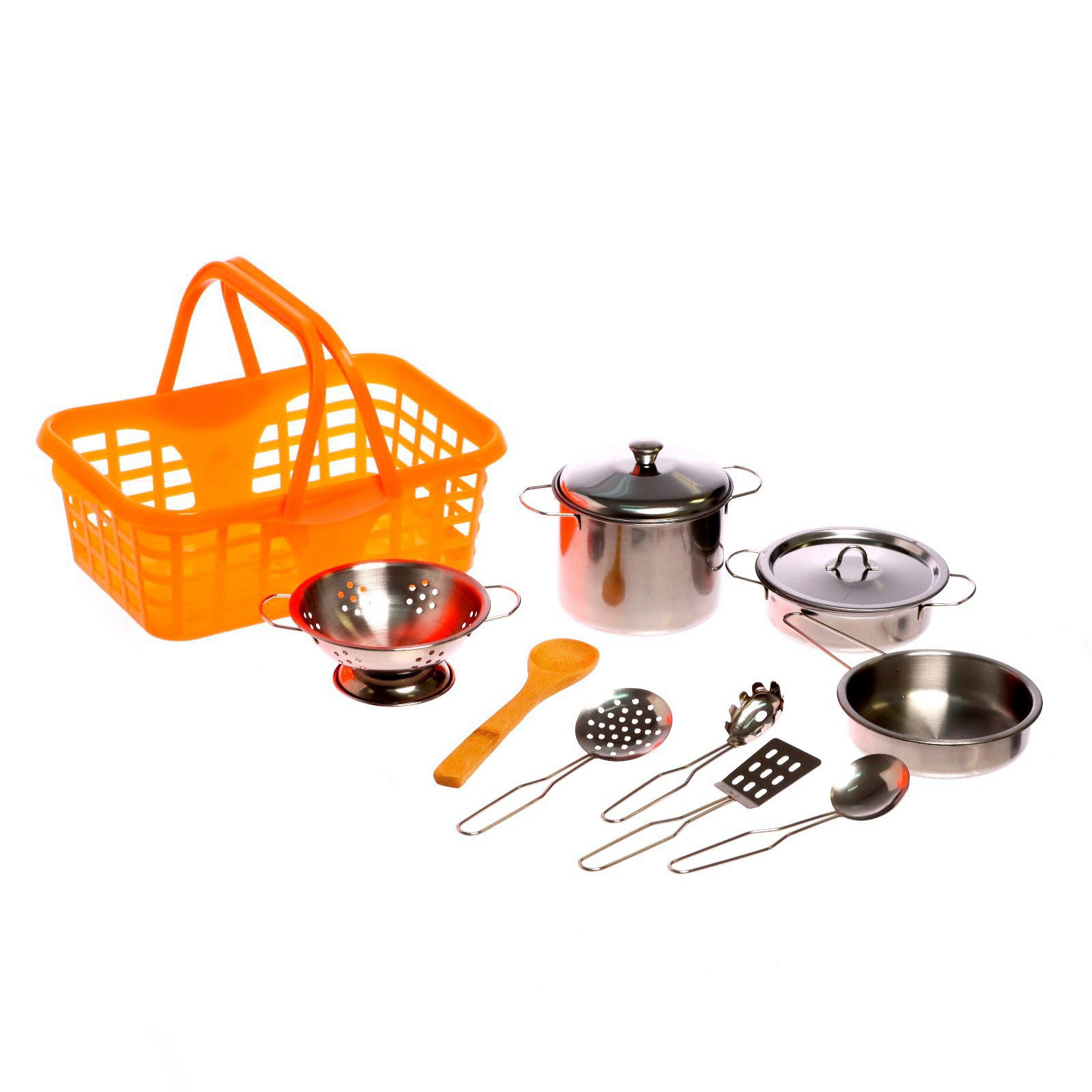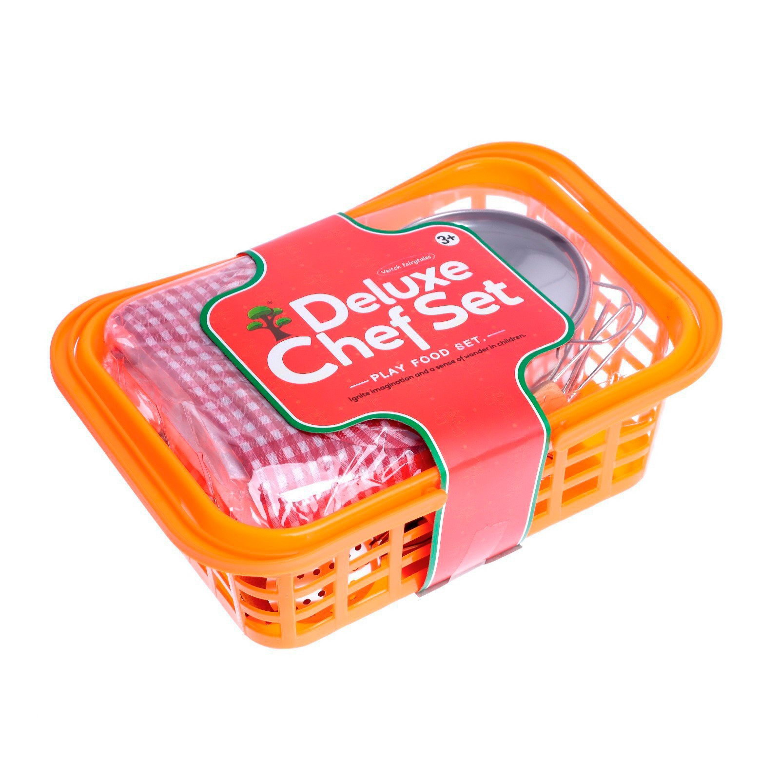 Набор детской металлической посуды "Супер Шеф", с фартуком и колпаком, в корзинке, МИКС, 17x24x9 см., Китай