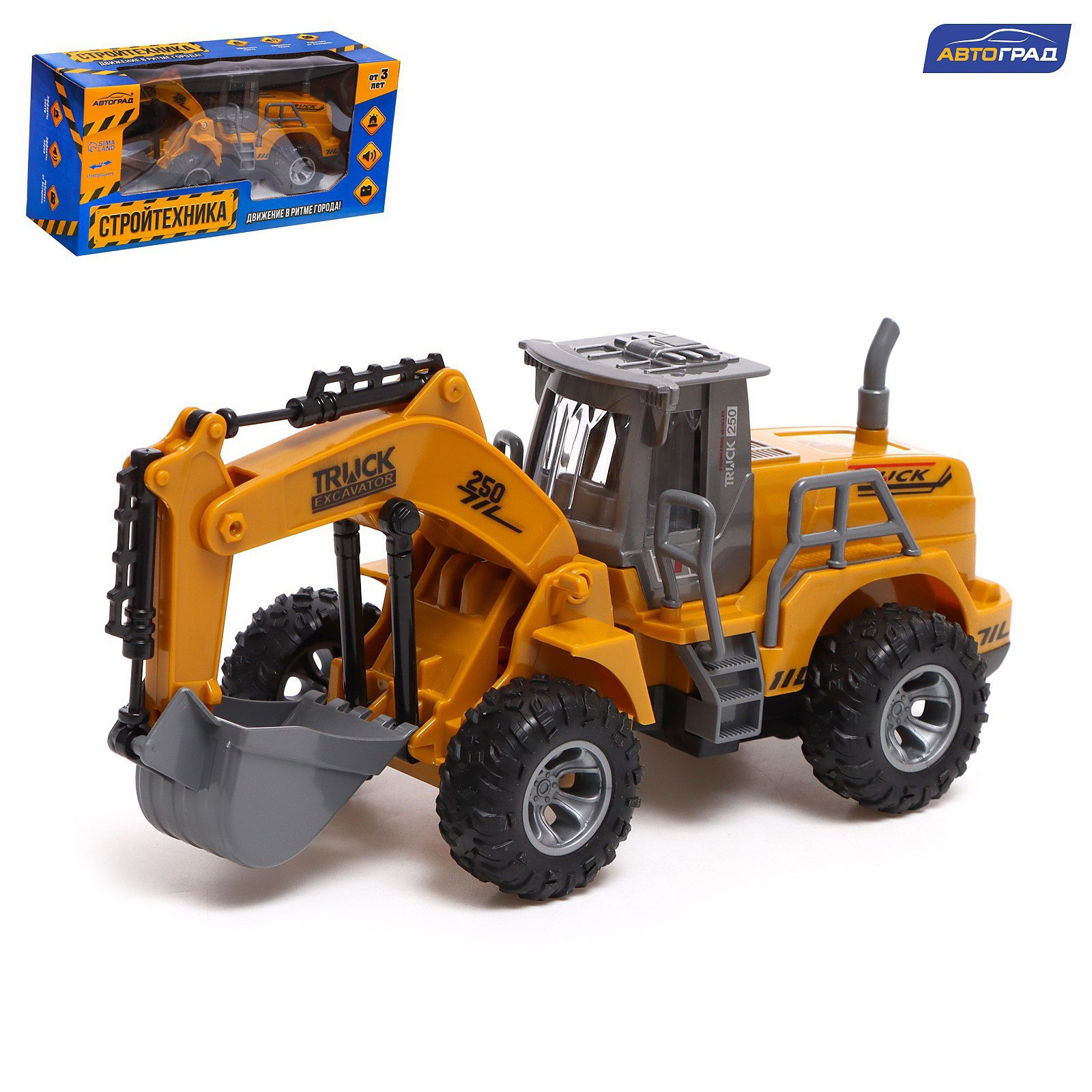 Экскаватор инерционный "Стройтехника", световые эффекты, подвижные детали, цвет жёлтый, 10x28x13.5 см., Автоград, Китай
