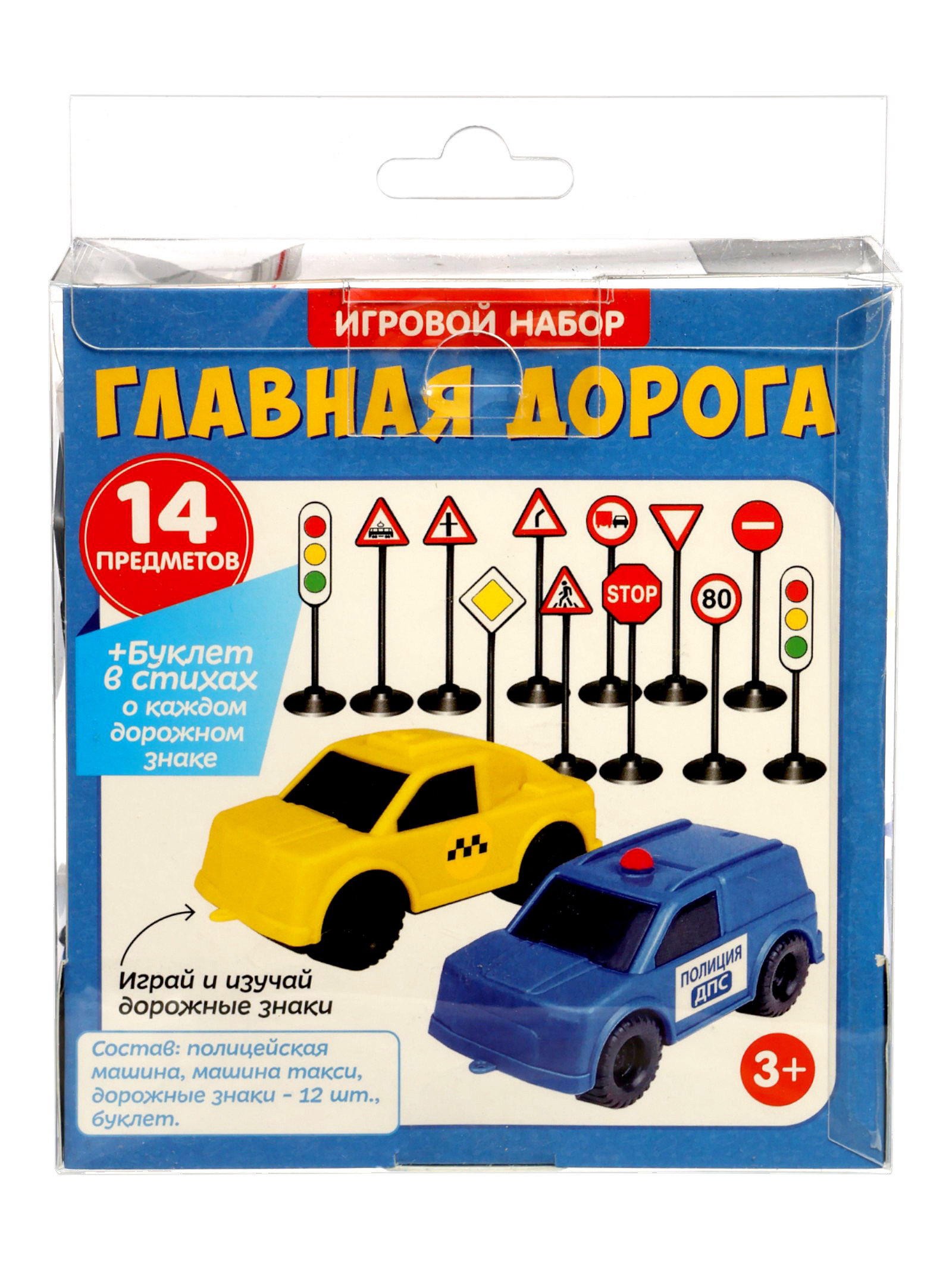 Игровой набор "Главная дорога", 2 машинки, 12 дорожных знаков, Лена, Россия