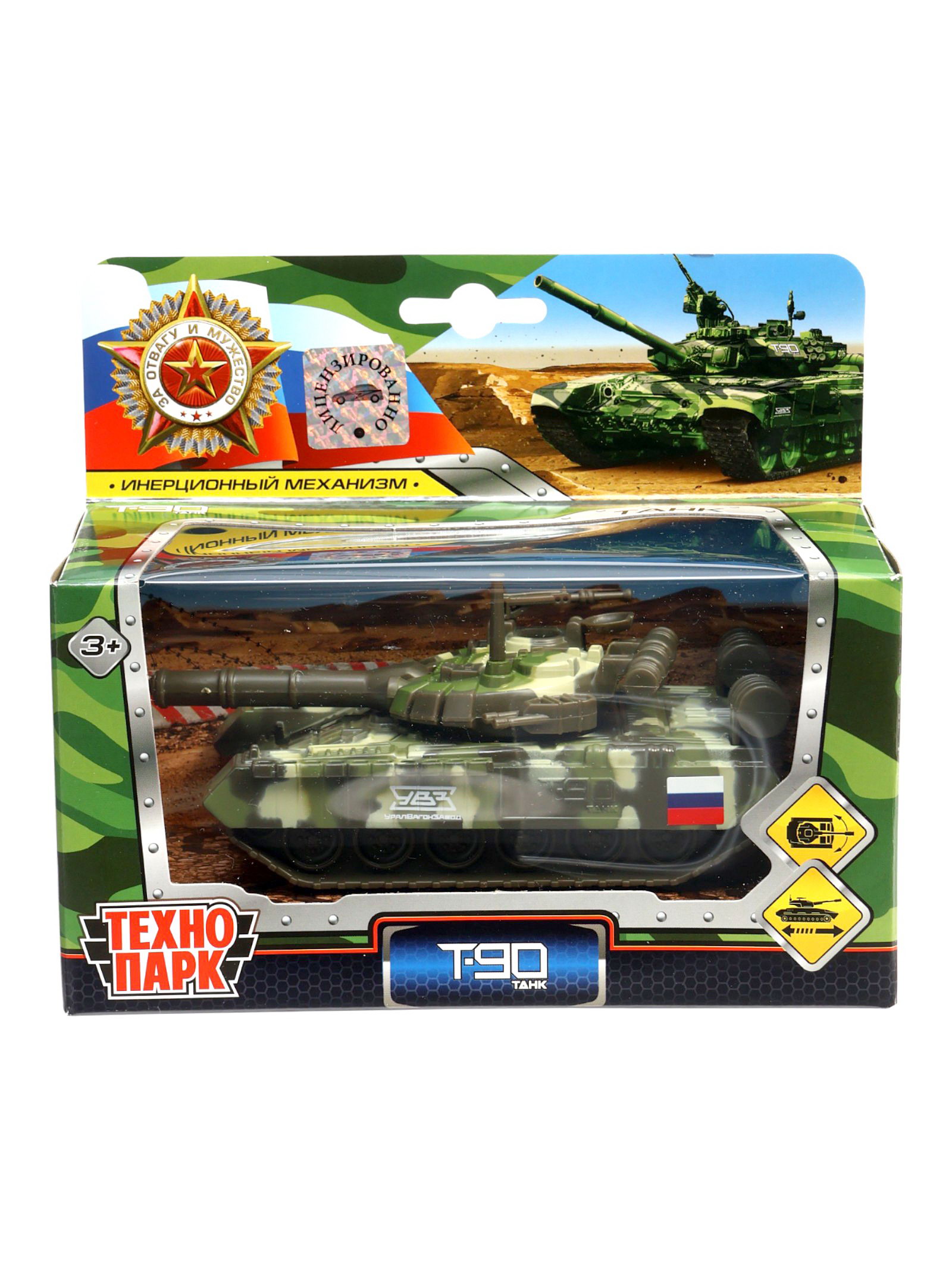 Машинка металлическая "Танк T-90" 12 см, подвижные детали, инерционная, Технопарк, Китай