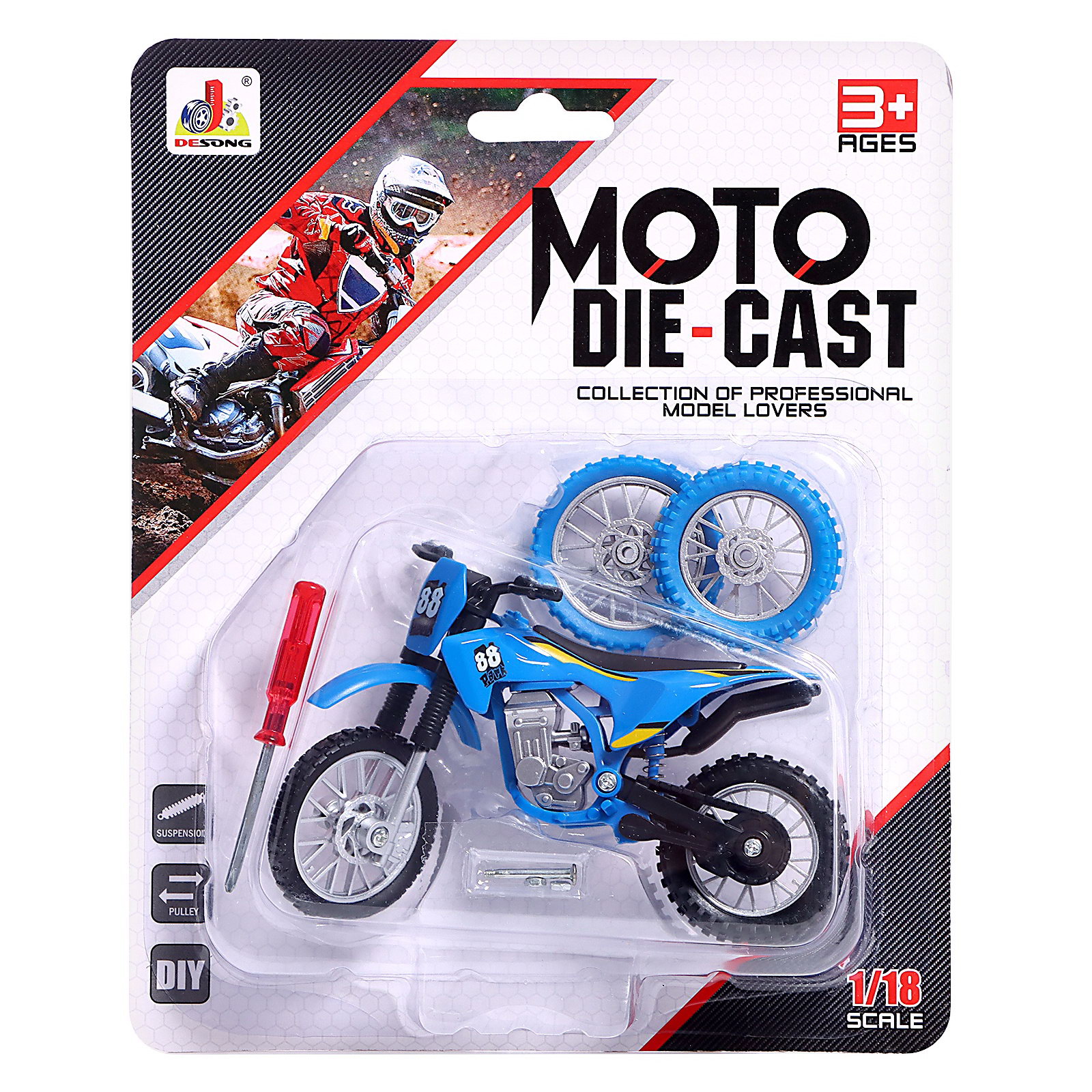 Мотоцикл "Эндуро", металлический, со сменными колёсами, 1:18, цвет МИКС, 4x12x7 см., Китай