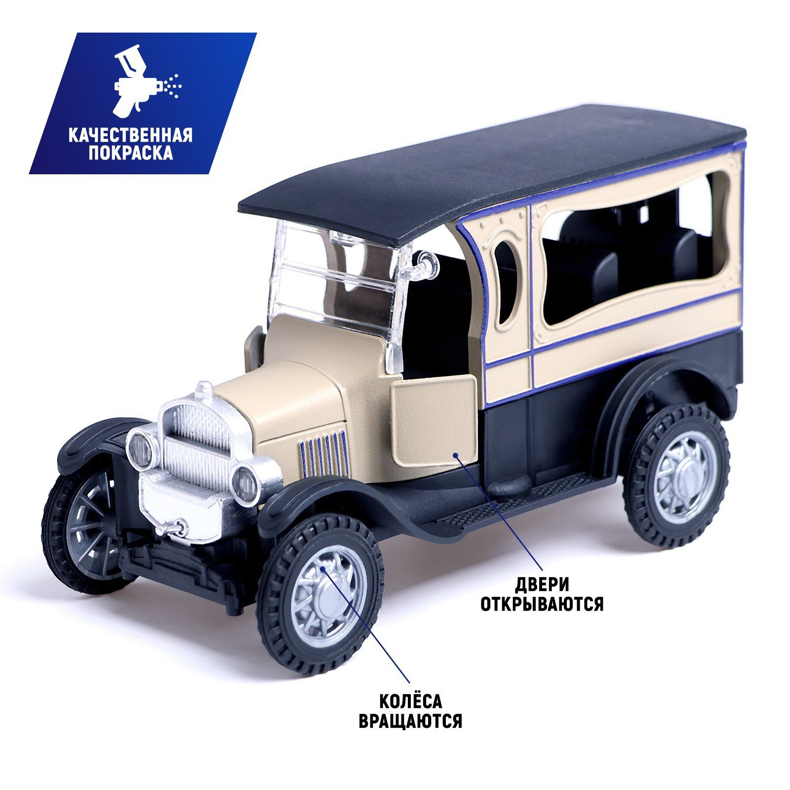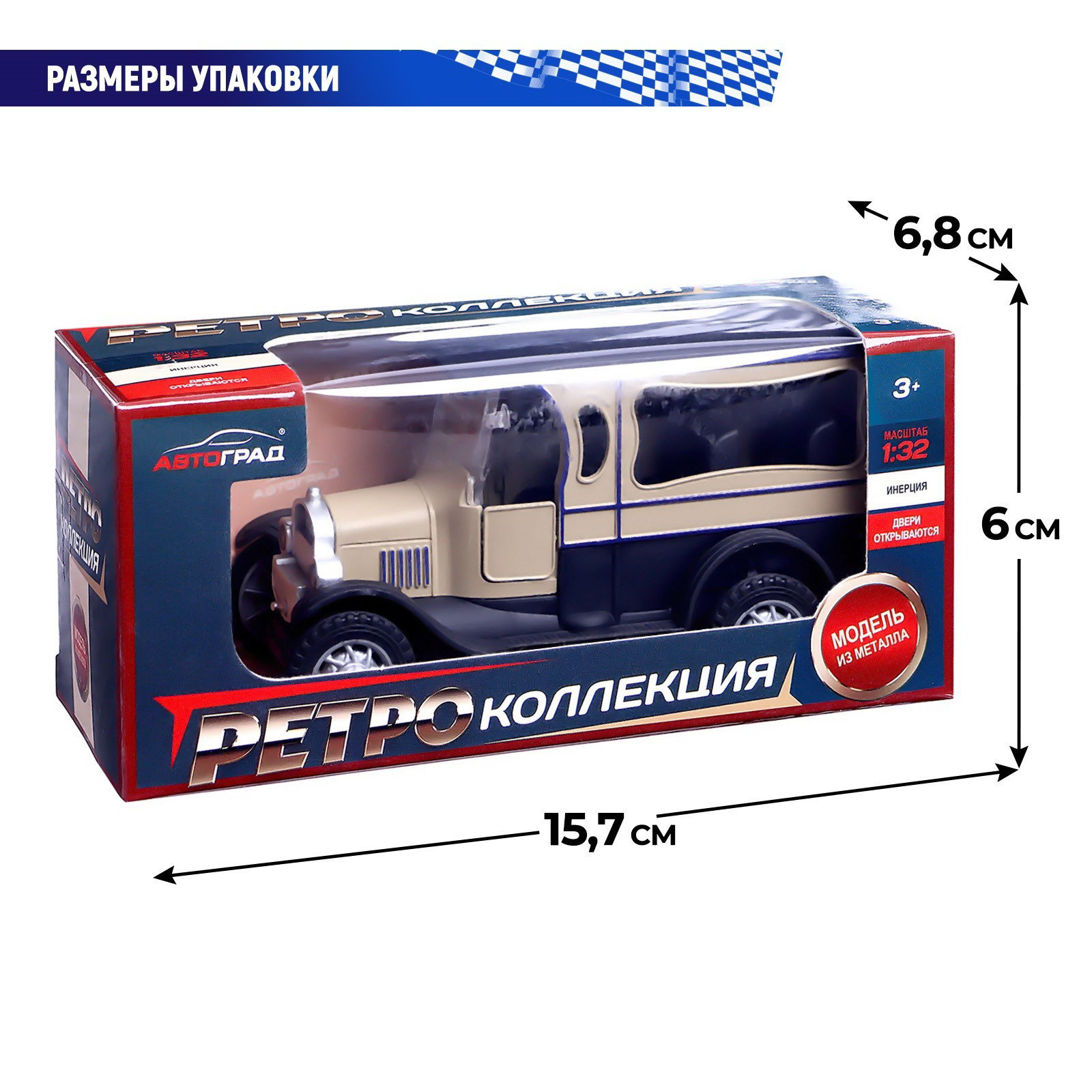 Машинка металлическая "Ретро", инерционная, 1:32, открываются двери, цвет бежевый, 5.3x11.6x6.5 см., Автоград, Китай
