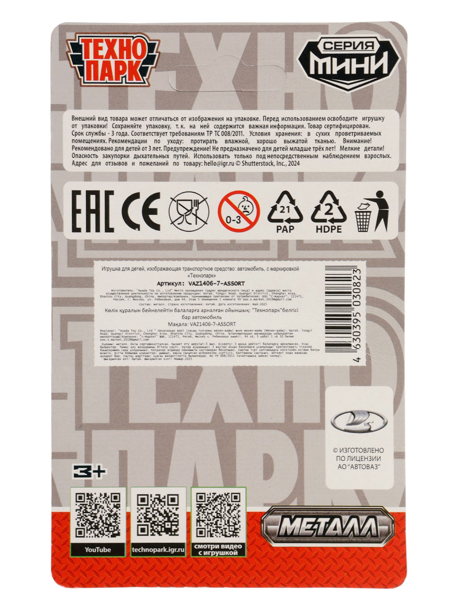Машина металлическая LADA, 7.5 см, МИКС, Технопарк, Китай