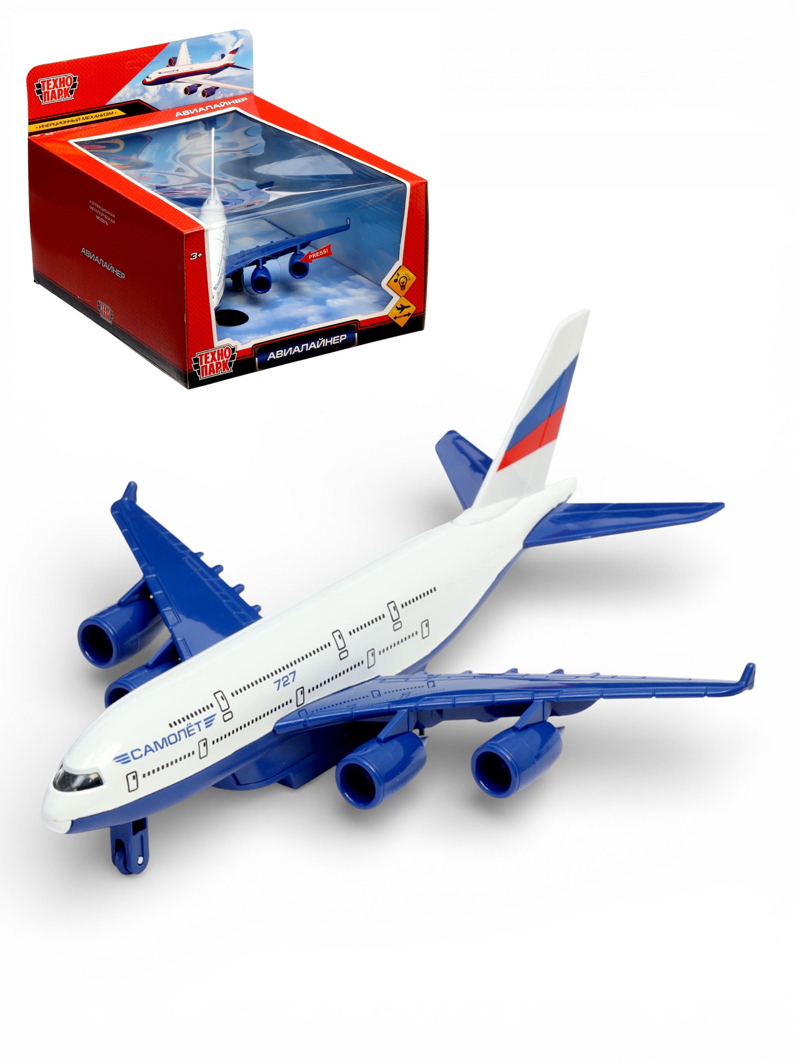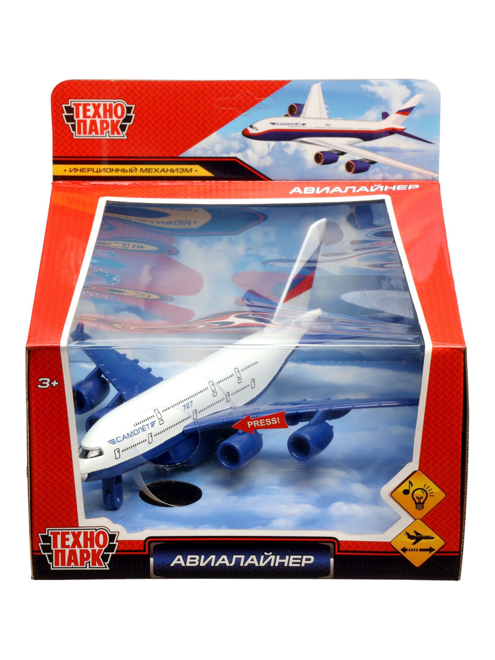 Модель металлическая "Авиалайнер", 22 см, свет и звук, инерция, подвижные детали, Технопарк, Китай