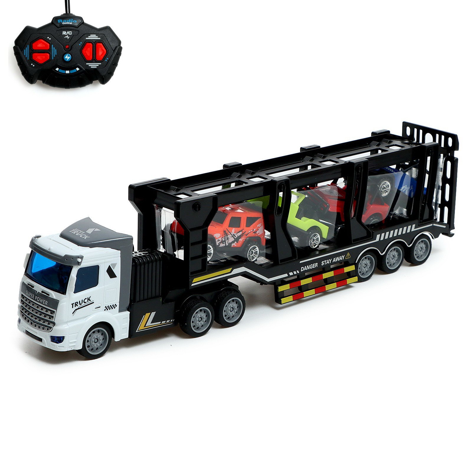 Цвет: Белый, Чёрный Размер упаковки: 12 x 16 x 30.5 см. Среда перемещения транспорта: Наземный транспорт Назначение транспорта: Грузовой Тематика назначения: Специальный транспорт Вид упаковки: Коробка картонная с PVC Для кого: Для мальчика Для кого: Для мальчика tnved: 9503008000 Лицензионная модель: Нет Возраст: От 3 лет Вид транспорта: Грузовик Тип питания: От аккумулятора Набор: Да Масштаб: 1/48 Дополнительные функции: Светящаяся Траектория движения: Во все стороны Тип механизма: Радиоуправление Типоразмер батареек: AA (LR6) Тип питания пульта управления: От батареек Марка автомобиля: Без марки Время работы, мин: 15 Максимальная скорость, км/ч: 20 Радиус действия, м: 10 Загрузи, доставь, стань героем дорог! Радиоуправляемый автовоз – это реалистичная модель в масштабе 1:48, которая подарит часы увлекательной игры.