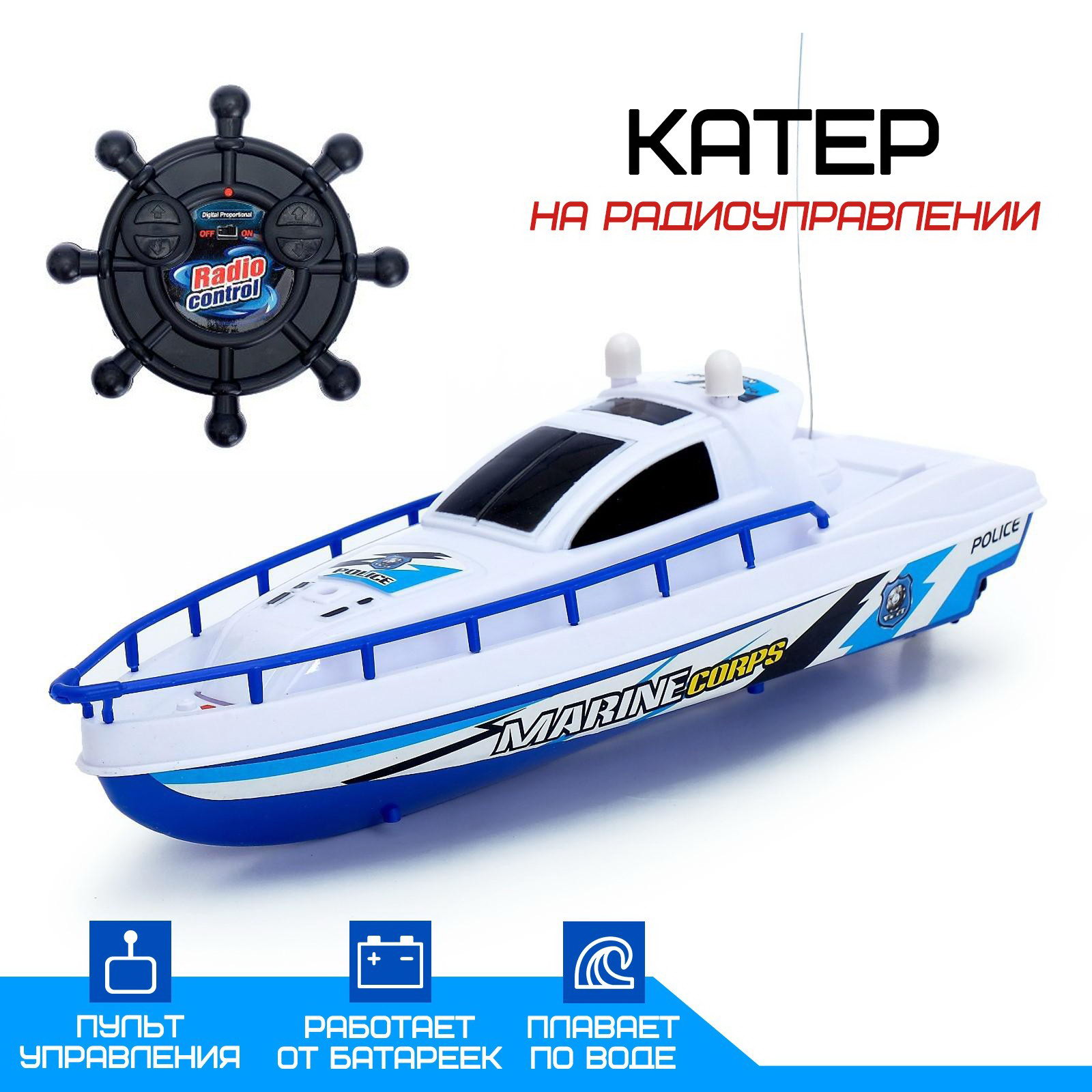 Катер радиоуправляемый "Патруль", работает от батареек, 8x25x6.5 см., Китай