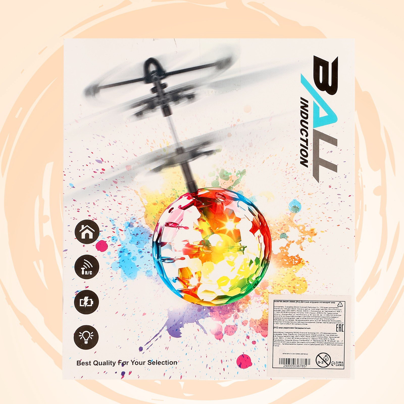 Цвет: Белый, Синий Размер упаковки: 6 x 19 x 16 см. Среда перемещения транспорта: Воздушный транспорт Тематика назначения: Пассажирский транспорт Вид упаковки: Коробка картонная с PVC Для кого: Унисекс Для кого: Унисекс tnved: 9503008000 Батарейки в комплекте: Нет Тип питания: От аккумулятора Дополнительные функции: Светящаяся Возраст: От 14 лет Вид транспорта: Вертолёт Тип механизма: Самоходный Аккумулятор в комплекте: Да Время работы, мин: 10 Набор: Нет Летающий шар – твой личный дрон для эффектных полетов! Почувствуй магию парящего шара с автоматическим управлением и яркой подсветкой! Этот стильный гаджет с изысканными бело-голубыми узорами словно сошёл с китайской фарфоровой вазы, а его инфракрасные сенсоры позволяют ему зависать в воздухе и уверенно обходить препятствия. Почему стоит попробовать?